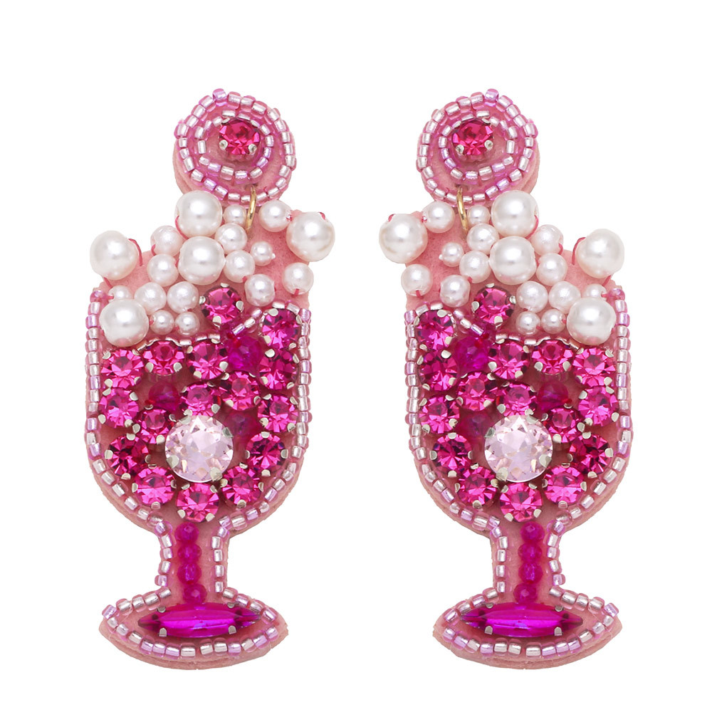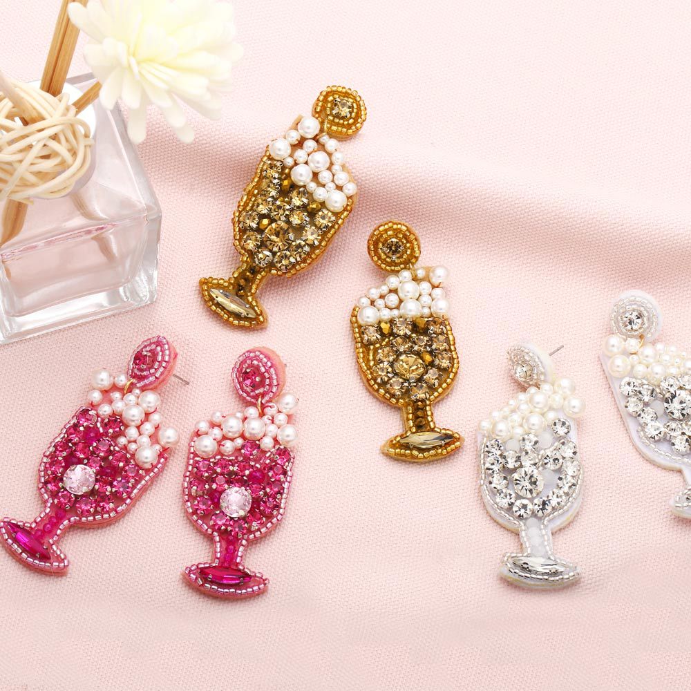 Clearance Europe and the United States hot selling handmade crystal pearl earrings creative niche design personality wine glass earrings erz68