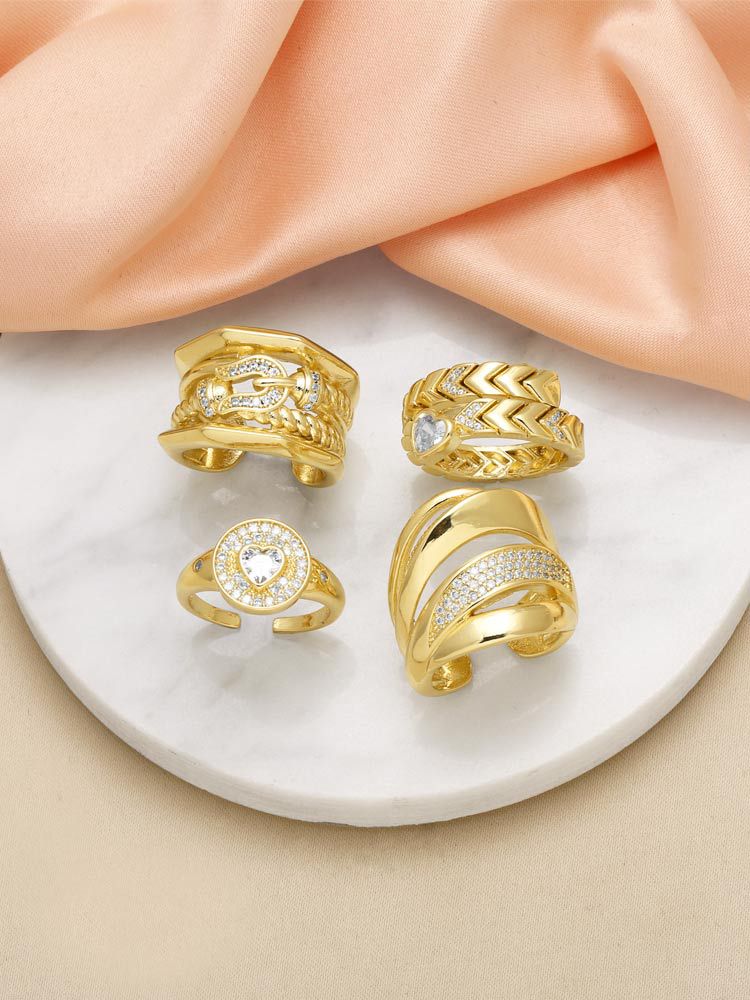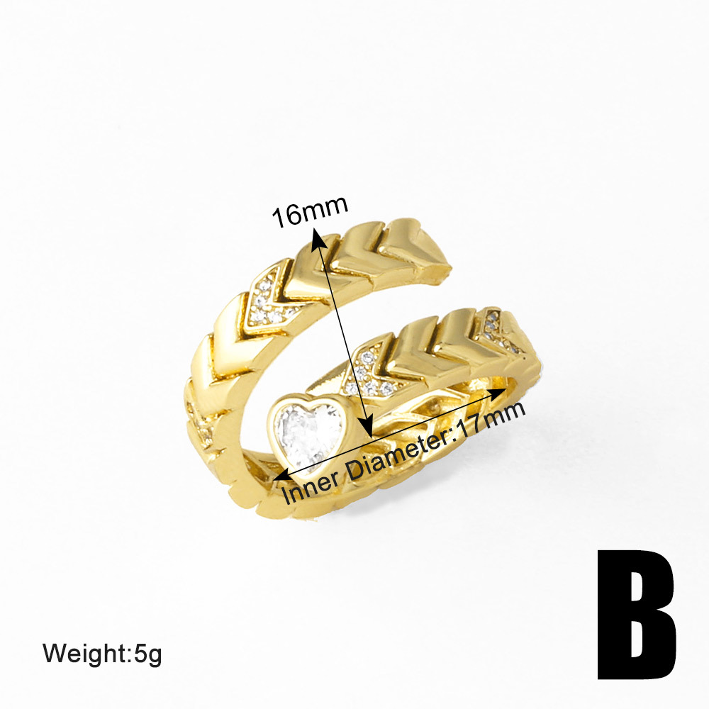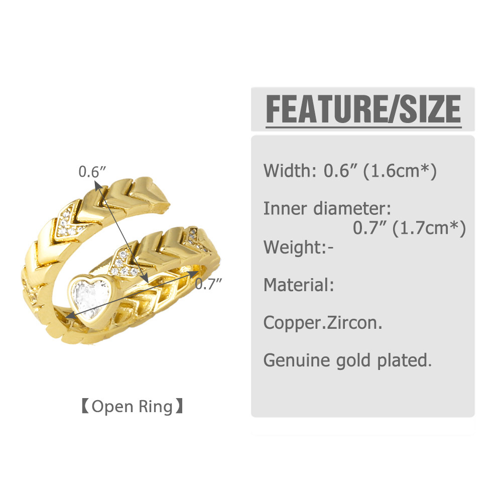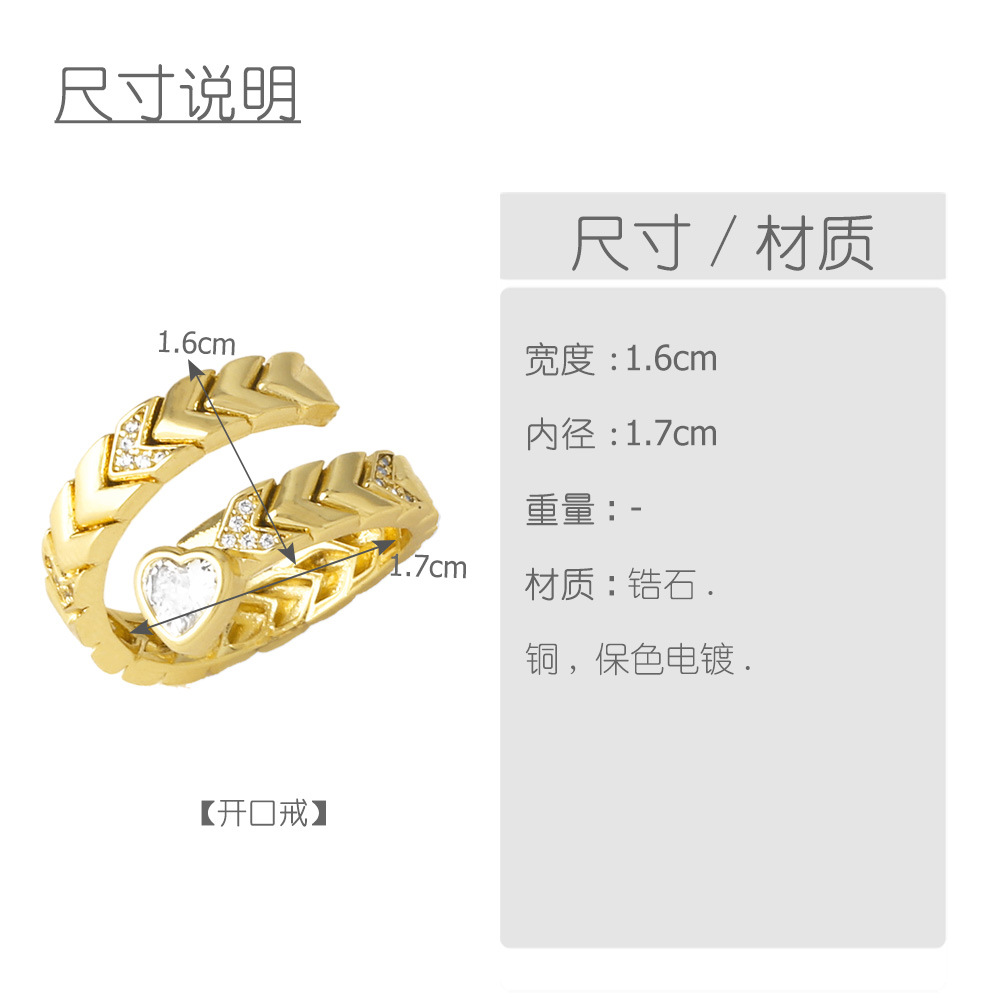Clearance Europe and the United States hot selling heart-shaped zircon ring female copper plated real gold inexpensive open ring riq22