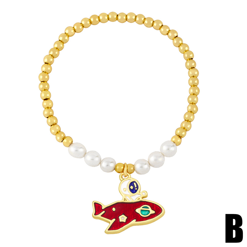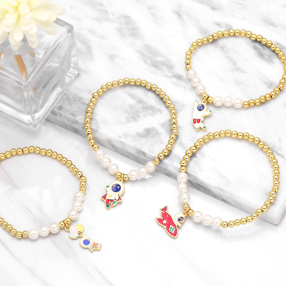Clearance European and American astronaut couple bracelets cute girl pearl beaded elastic bracelet bre99