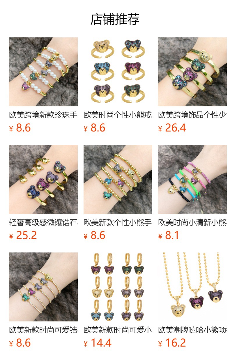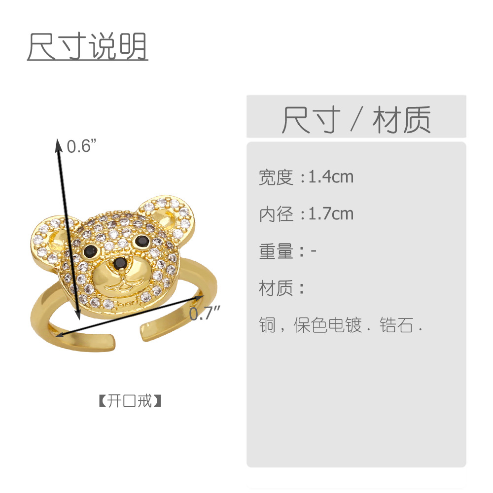 Clearance European and American bear open ring Internet celebrity style sweet and cute versatile bear ring female rik70