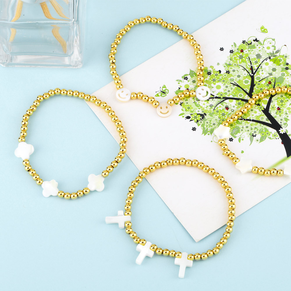 Clearance European and American bracelet tide shell cross love five-pointed star rose beaded elastic bracelet bre65