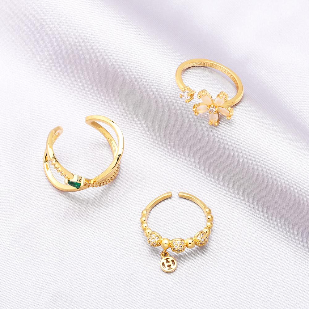 Clearance European and American cat's eye stone diamond flower open ring retro light luxury geometric cross ring rir66