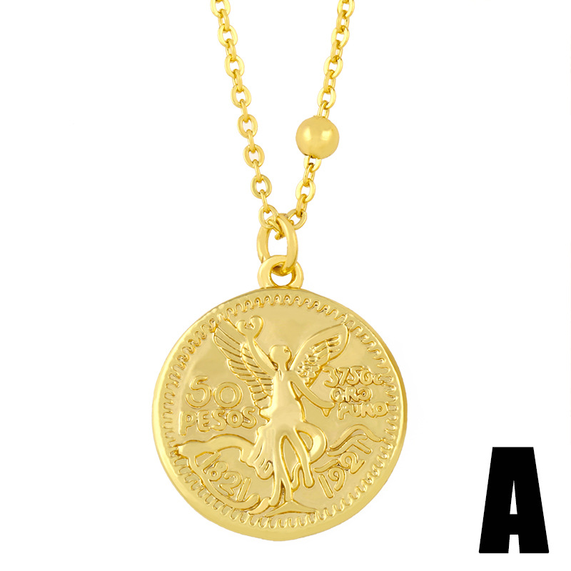 Clearance European and American celebrity accessories 50 peso gold coin necklace female clavicle chain sweater chain round necklace nks23
