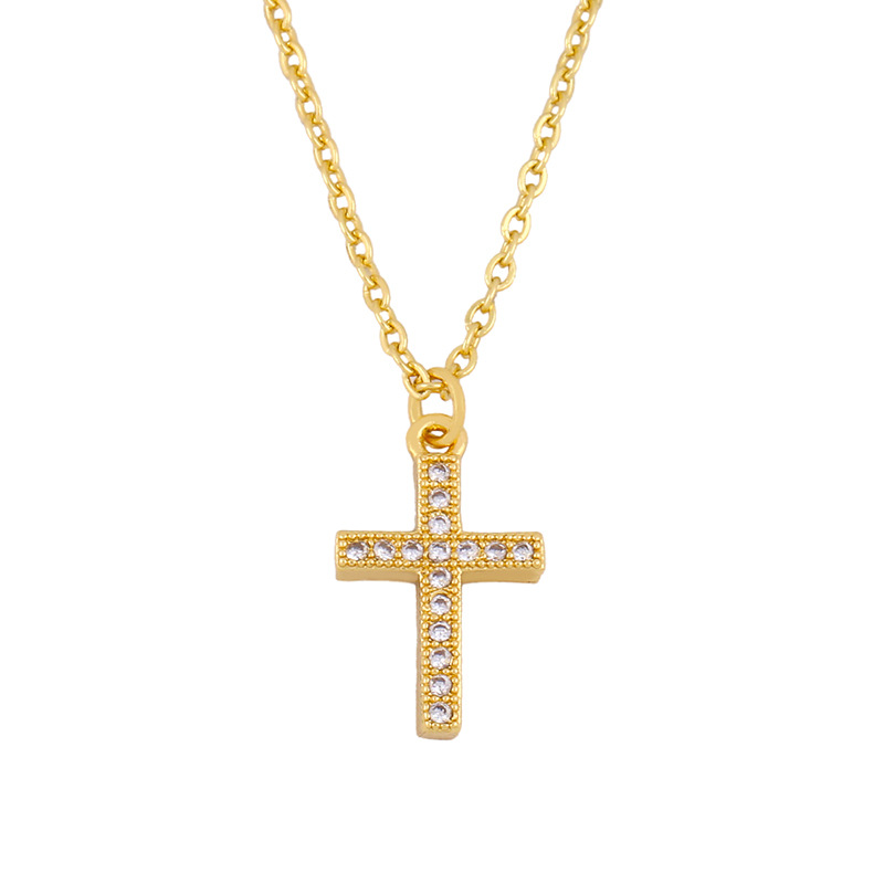 Clearance European and American classic retro inlaid zircon cross pendant necklace female mini cross necklace nkq43