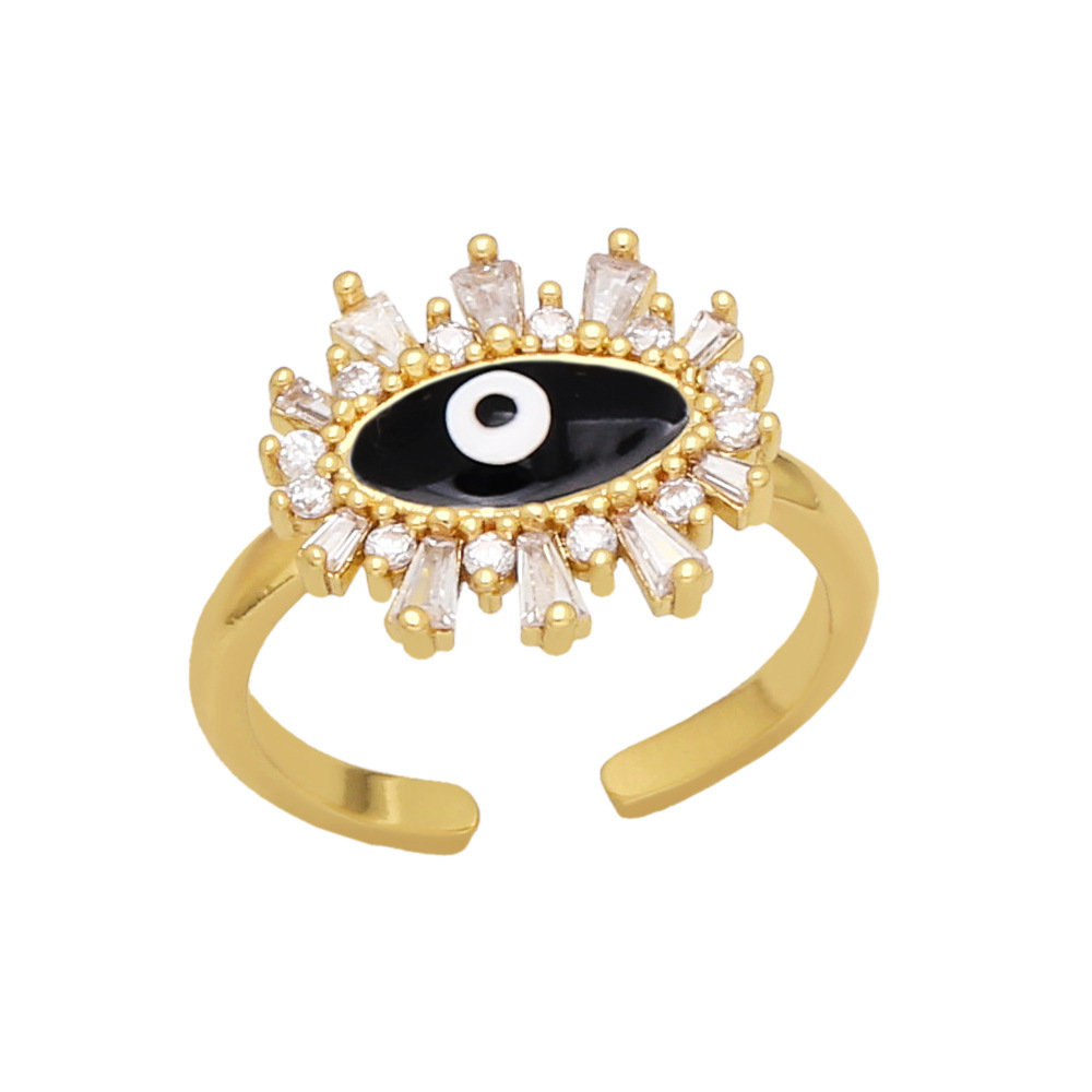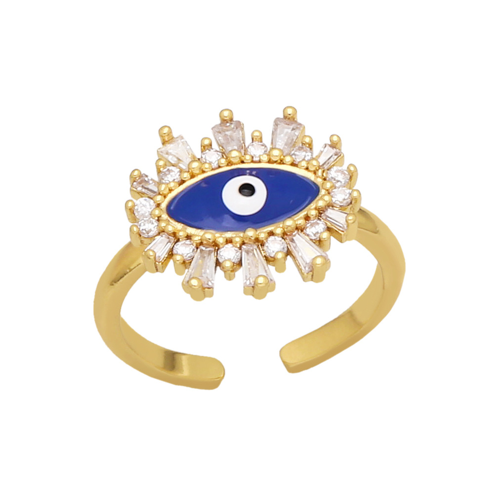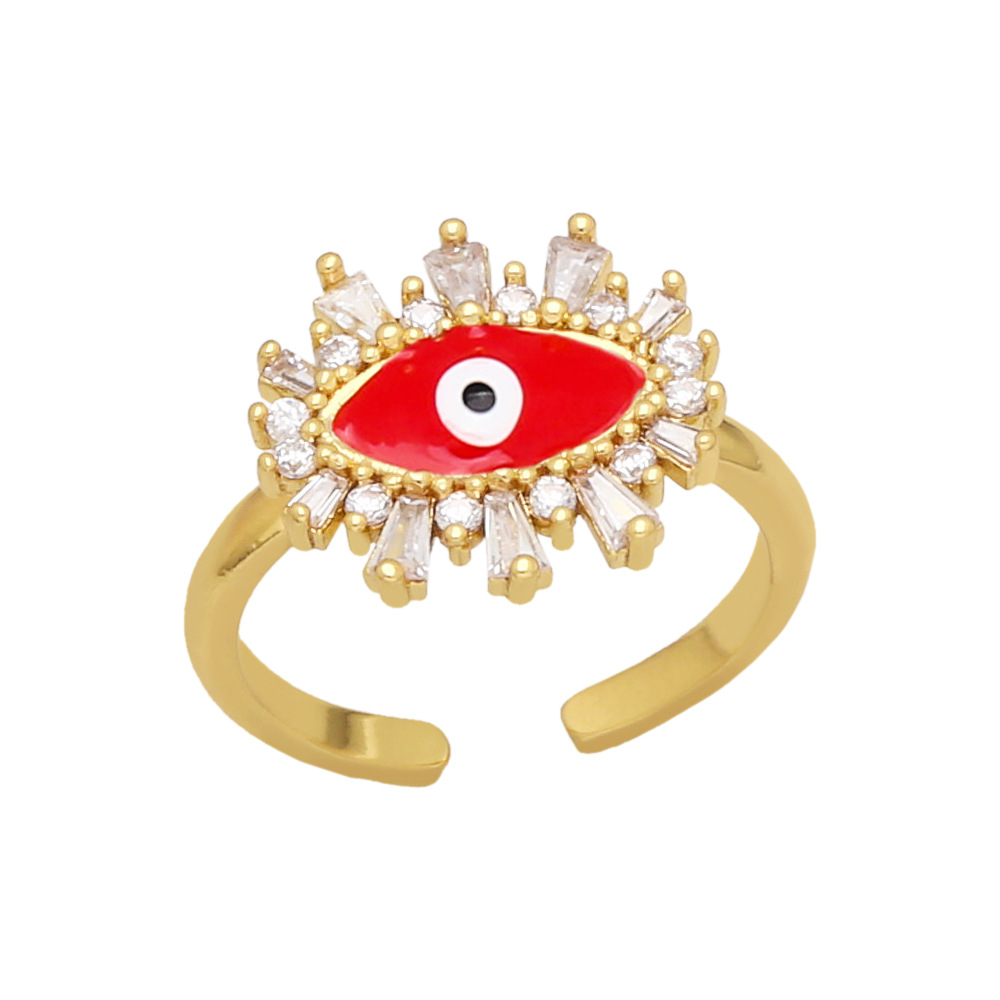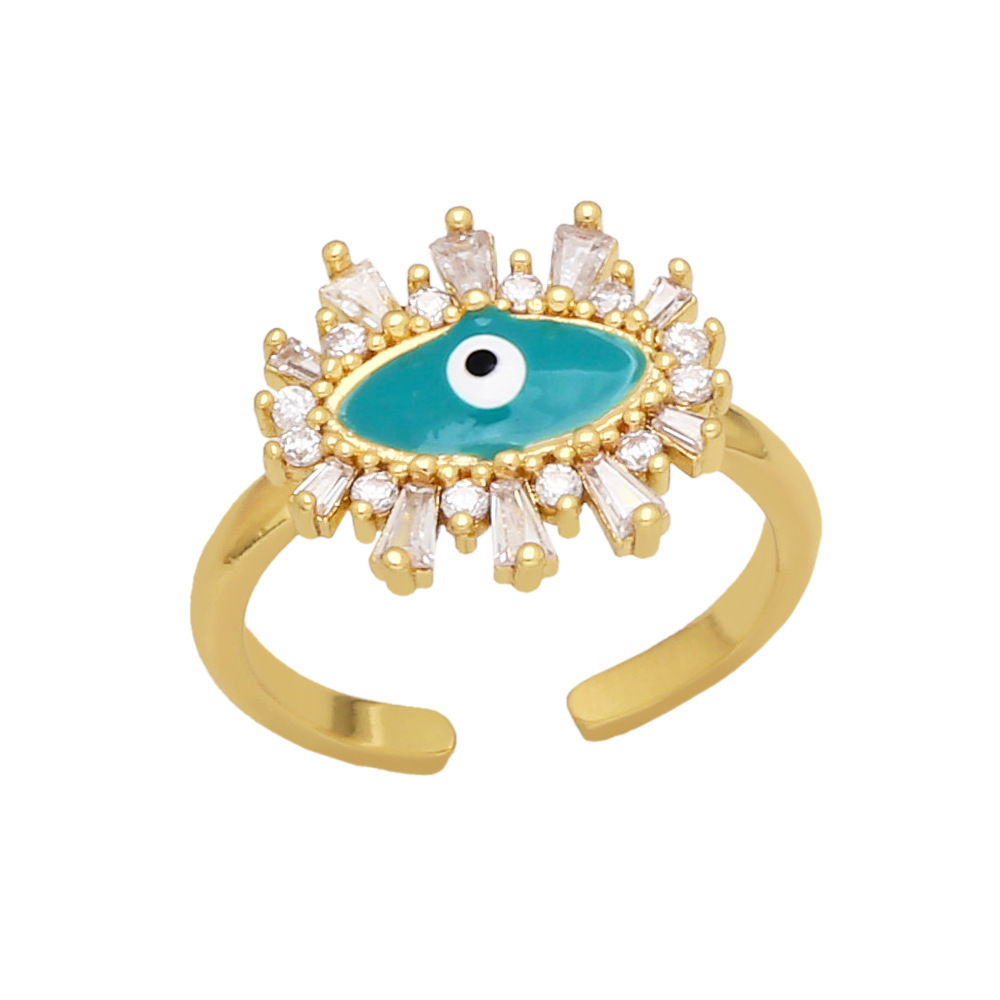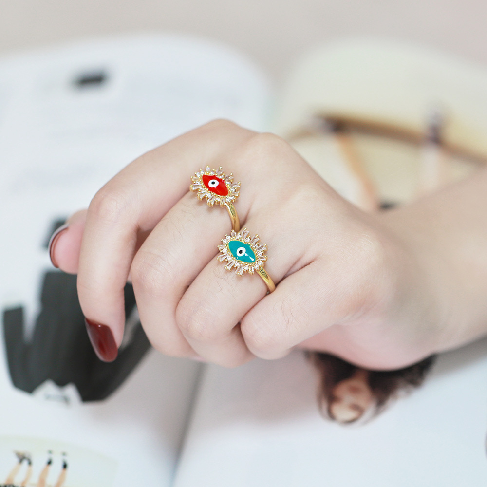 Clearance European and American color oil drop zircon devil eye ring female simple eyelash eye opening ring riq25