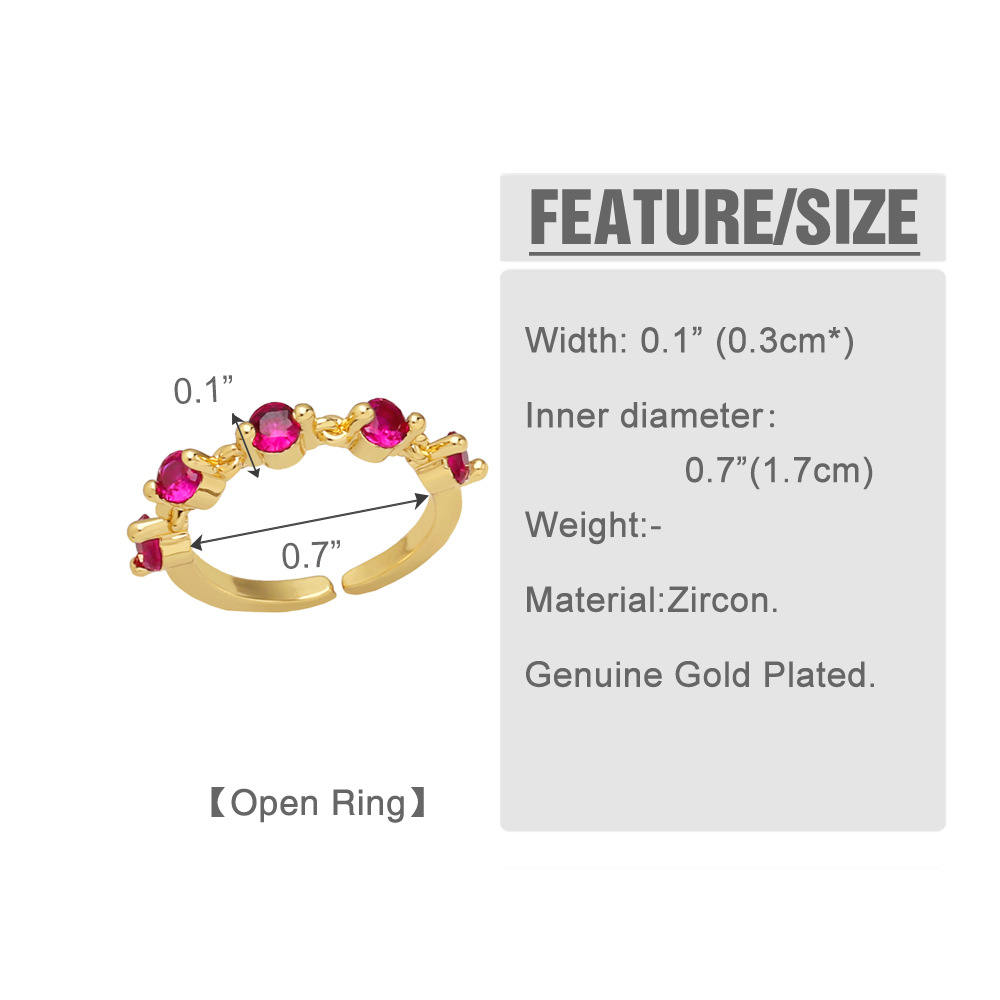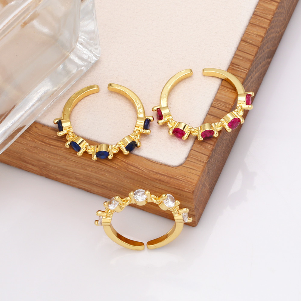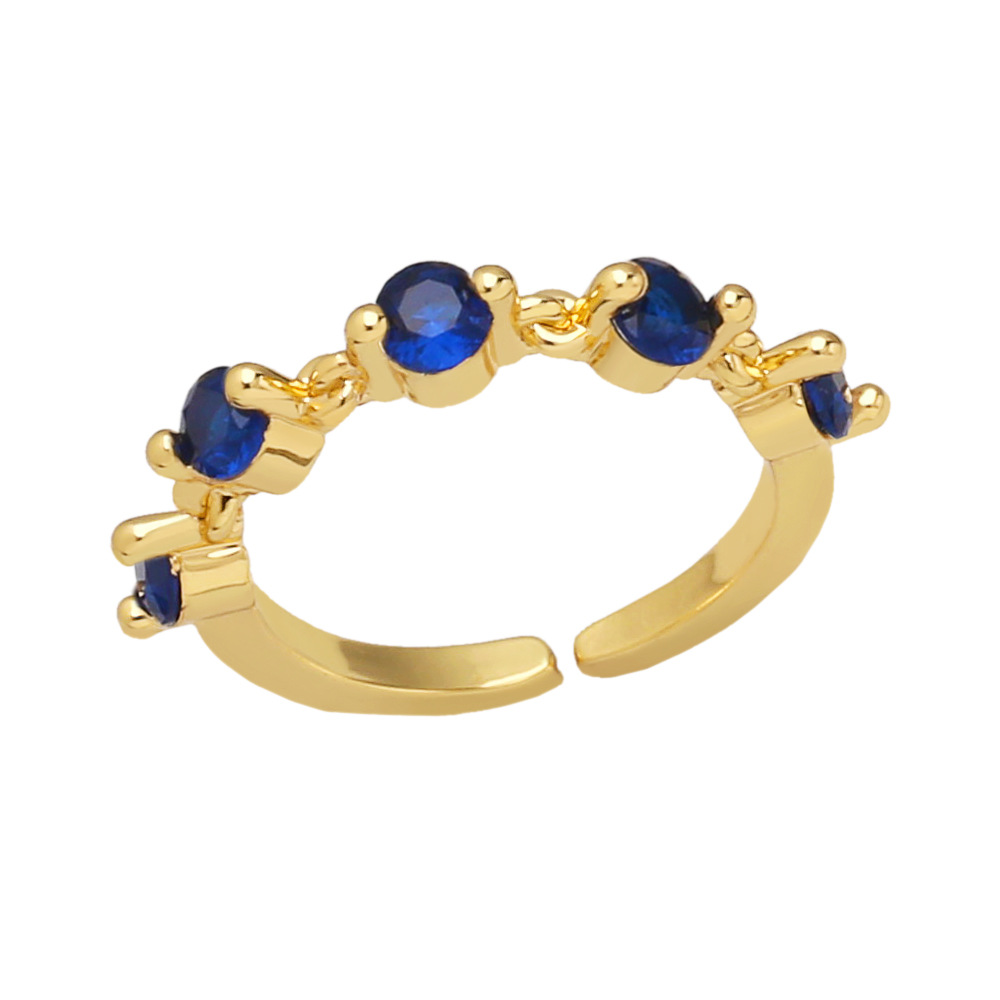 Clearance European and American colored zircon ring female niche design open ring female Internet celebrity ring hand jewelry rir11