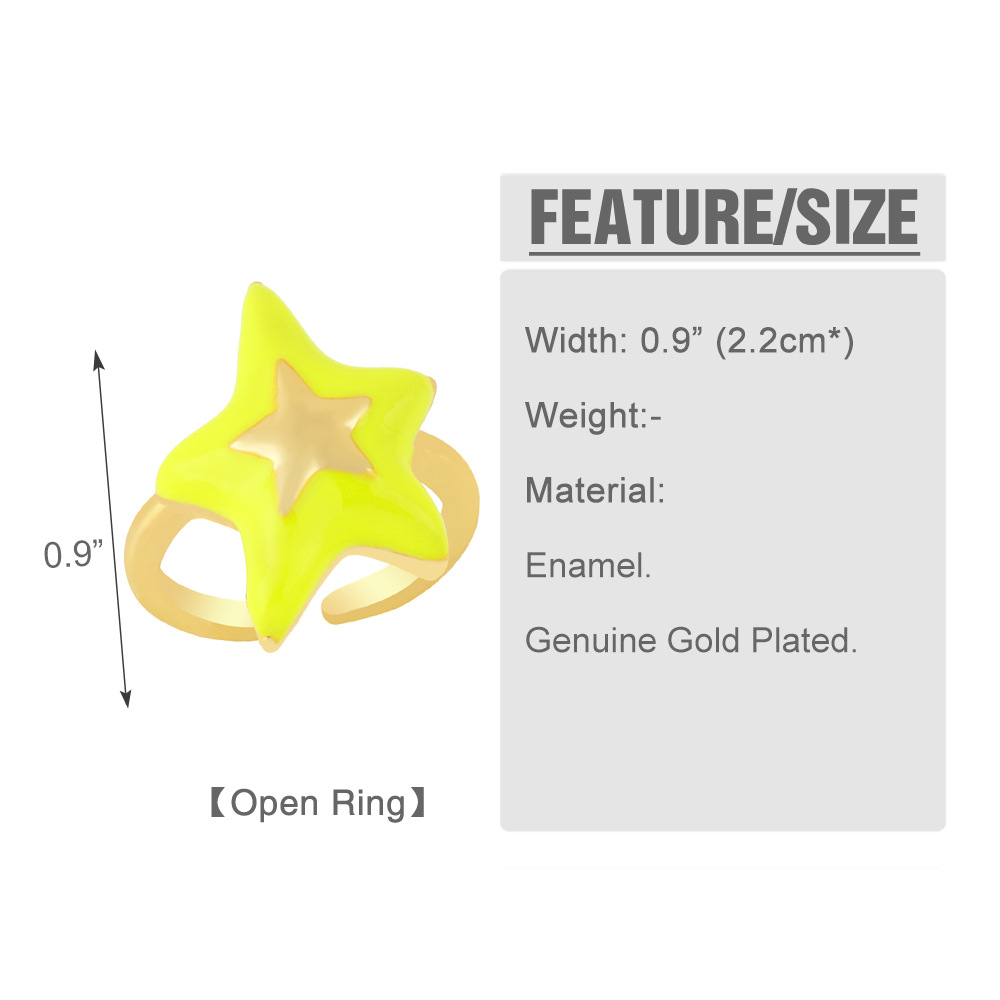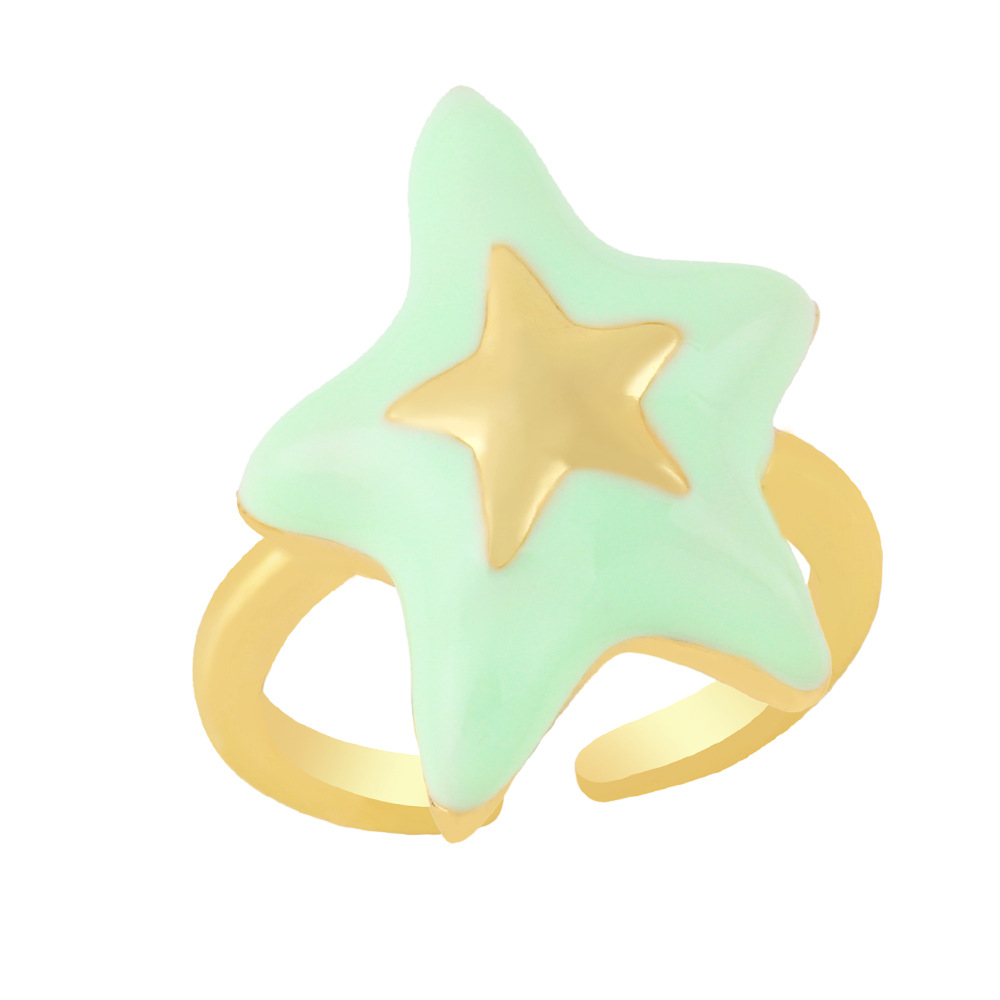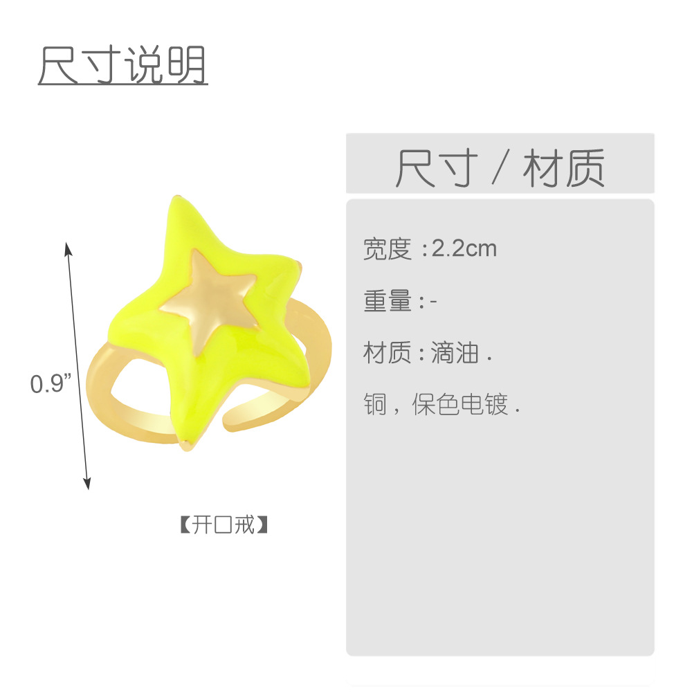 Clearance European and American copper plated 18K gold drop oil five-star ring ring simple star open ring female rin69