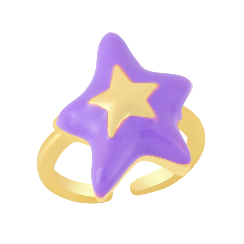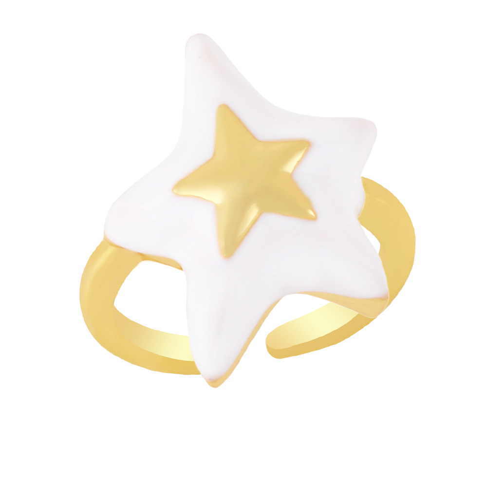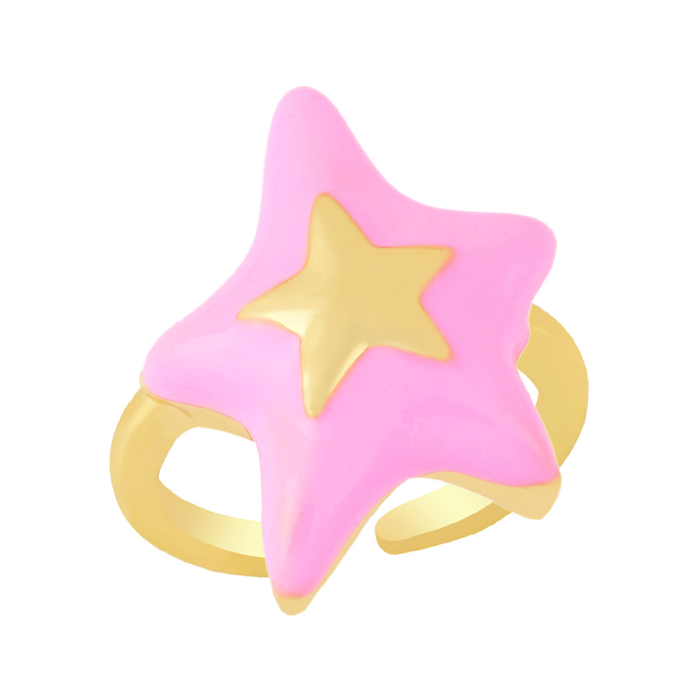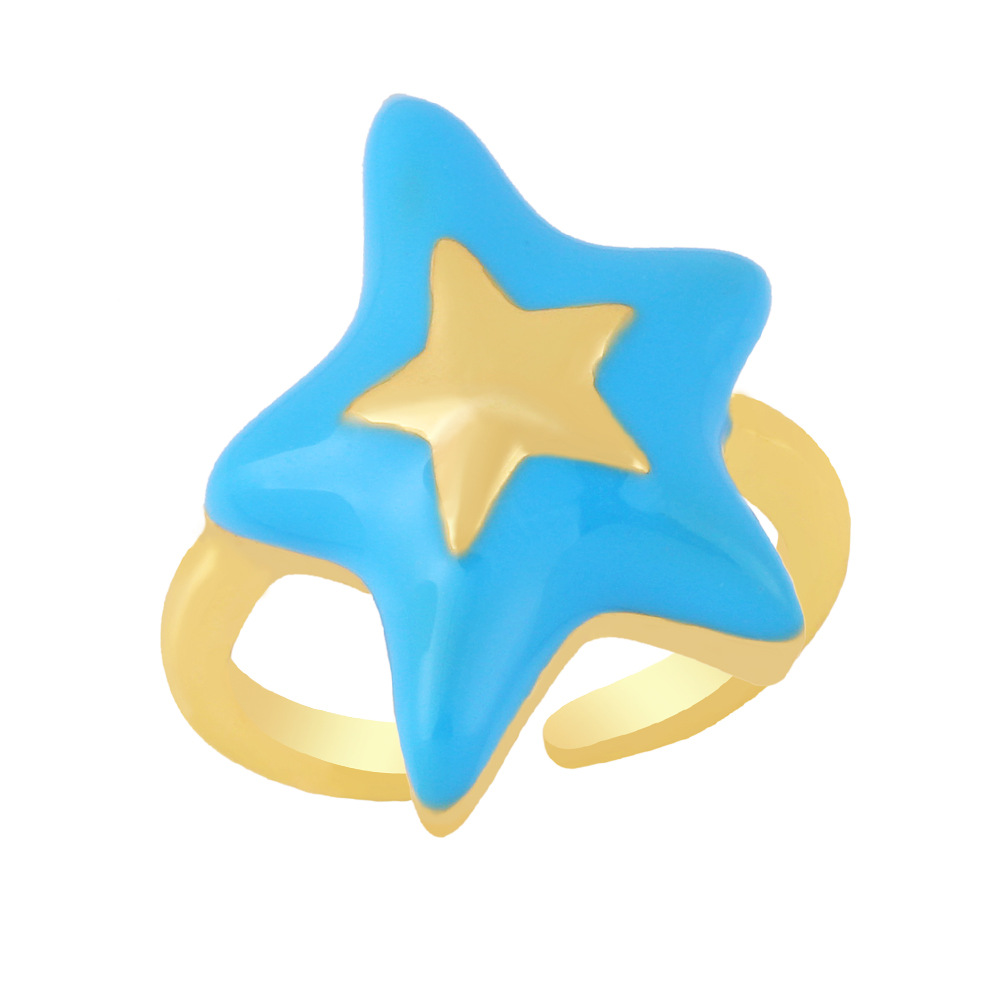 Clearance European and American copper plated 18K gold drop oil five-star ring ring simple star open ring female rin69