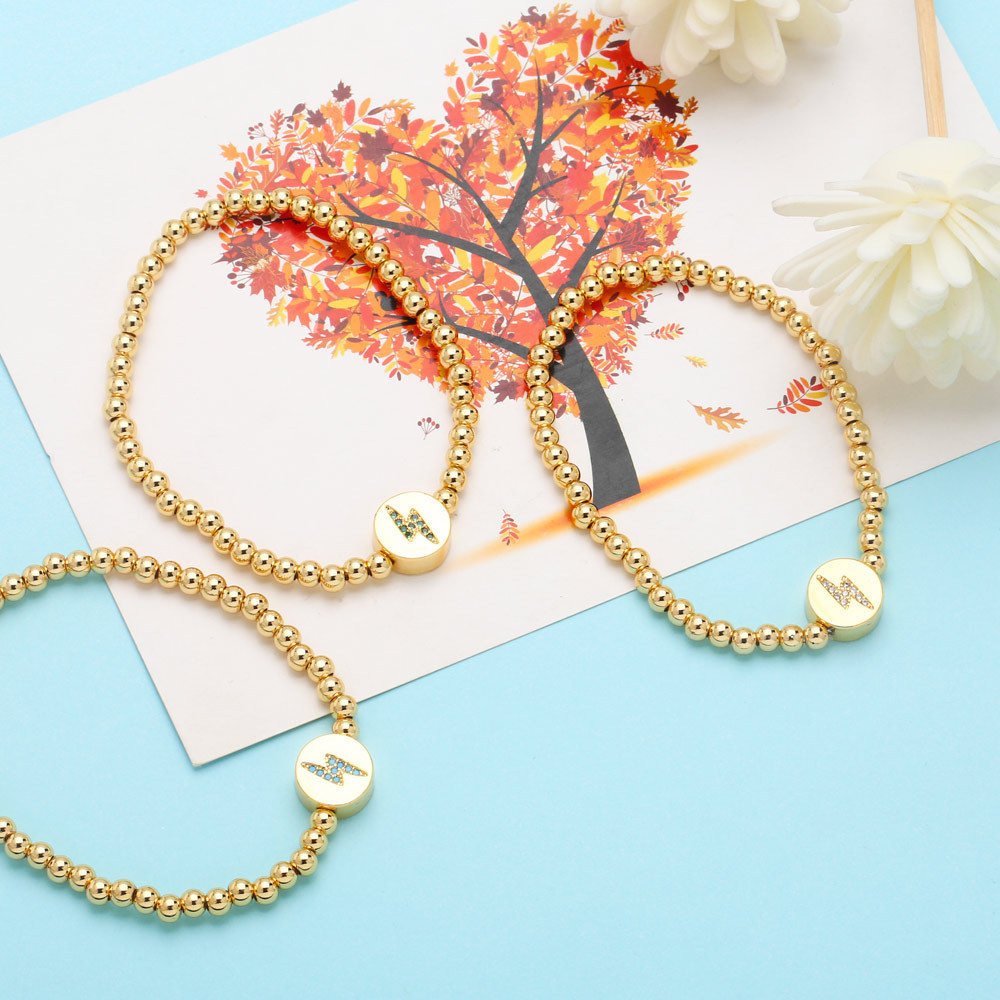 Clearance European and American creative diamond lightning bracelet women's simple gold-plated copper beaded elastic bracelet brh22