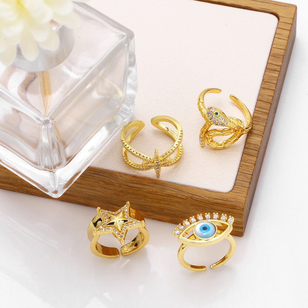 Clearance European and American devil eye ring female personality eye five-pointed star ring opening adjustable rip49