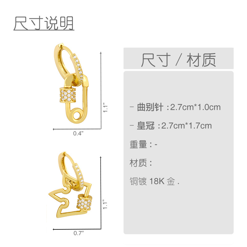 Clearance European and American earrings cold style temperament pin earrings ear buckle female niche all-match crown earrings erv59