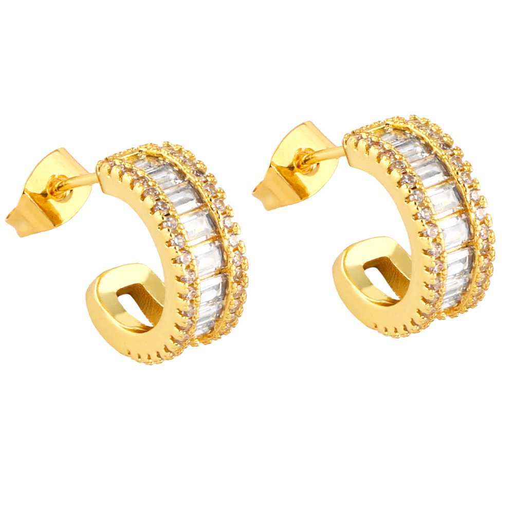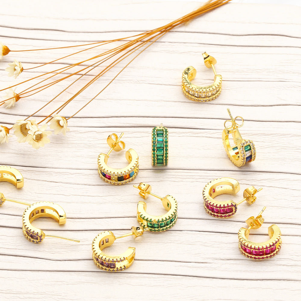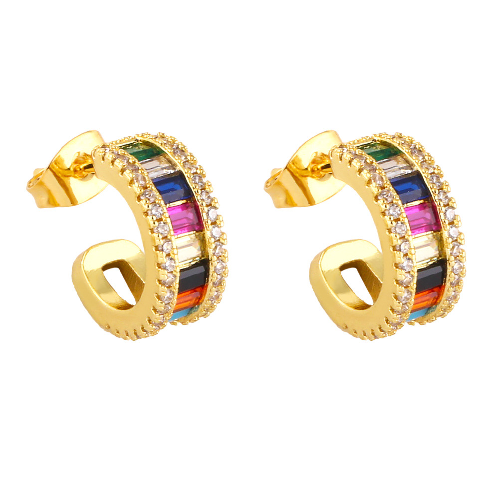 Clearance European and American earrings simple geometric C-shaped earrings trendy fashion colorful zircon earrings female era170