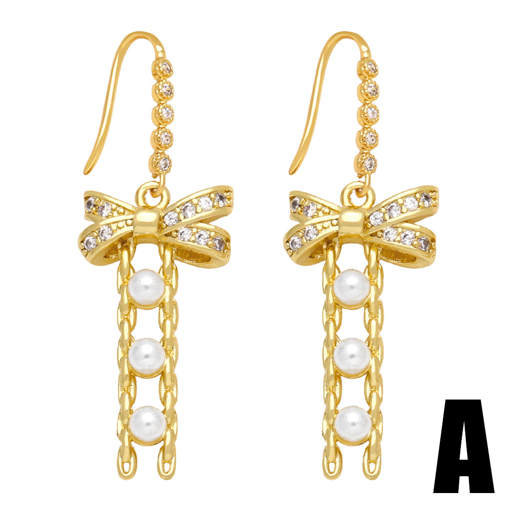 Clearance European and American earrings temperament simple pearl bow earrings versatile lock pineapple earrings ear hook erq94