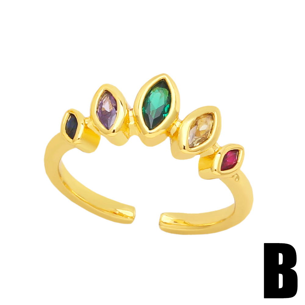 European and American luxury design ring fashionable temperament horse eye zircon ring multi-layer hollow design index finger ring