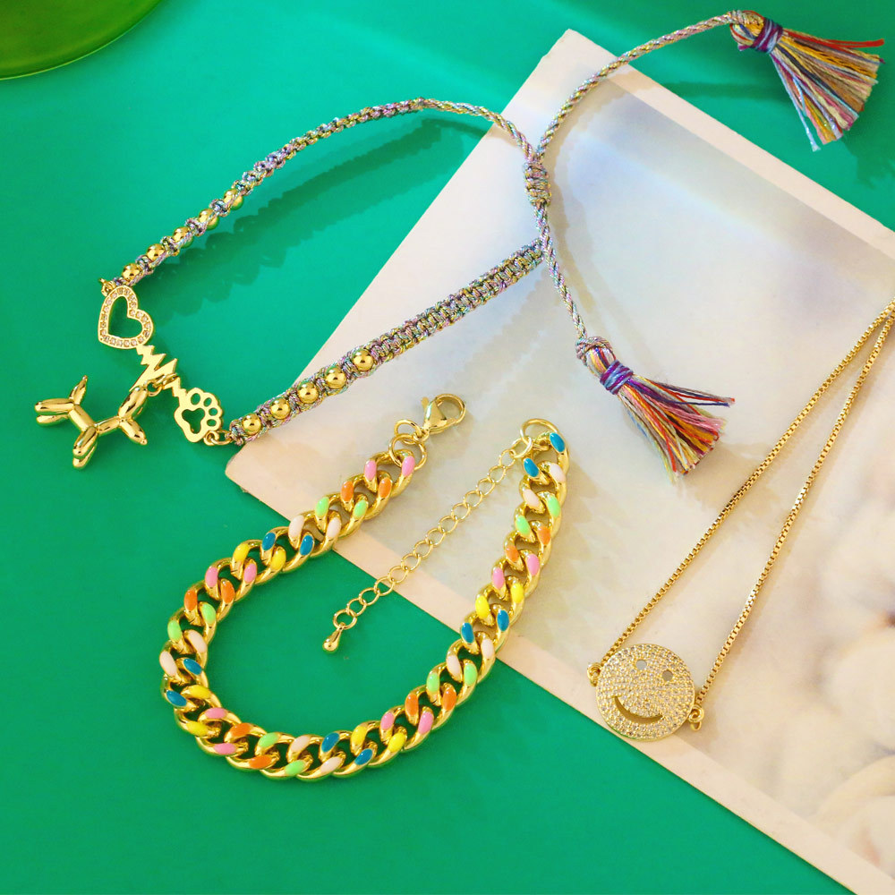 Clearance European and American ethnic style Bohemian bracelet female color oil drop Cuban chain smiley face bracelet bre29