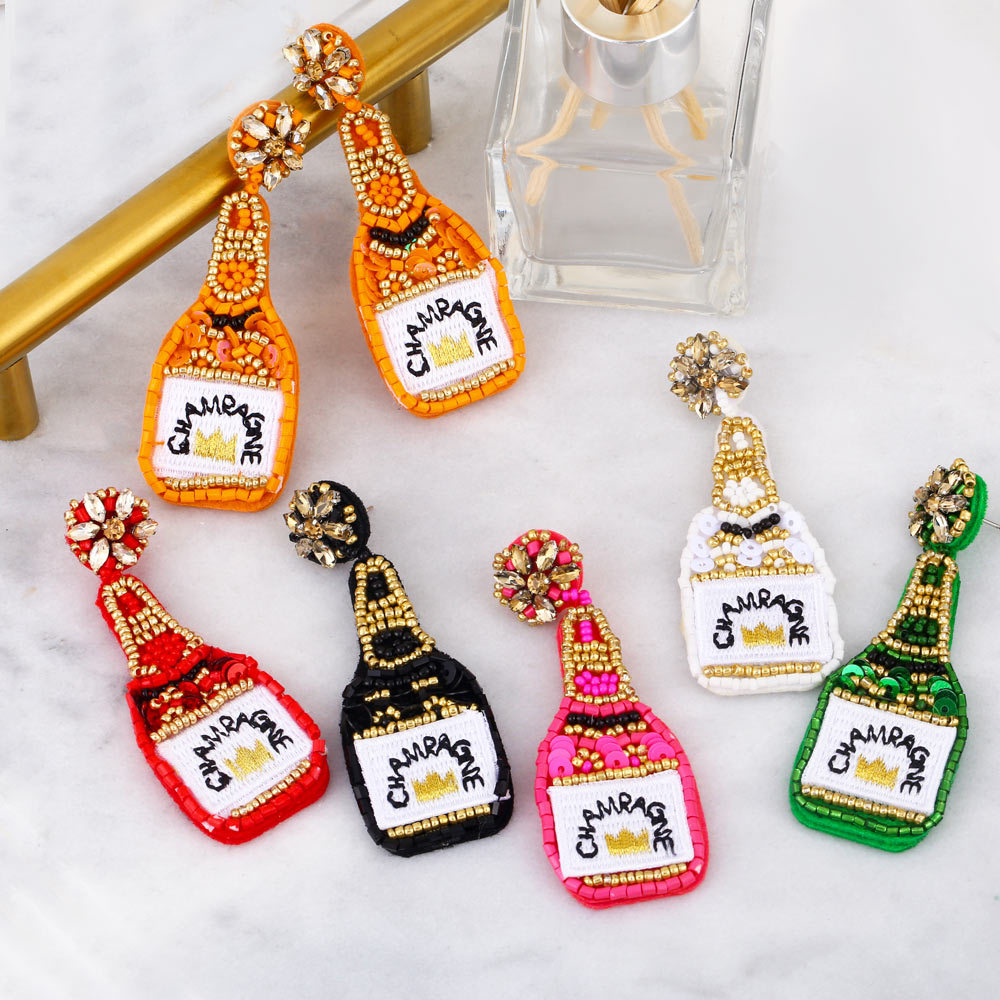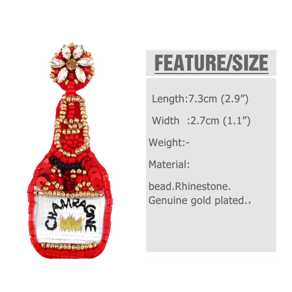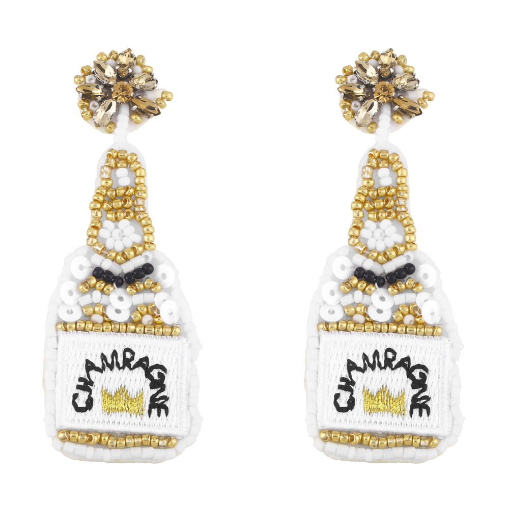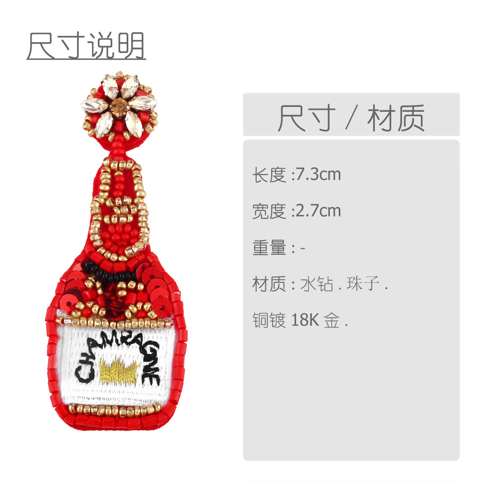 Clearance European and American exaggerated champagne bottle rice bead sequin earrings female embroidered letters CHAMEAGNE earrings ery15