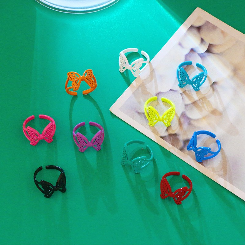 Clearance European and American exaggerated color butterfly oil drop ring cute sweet open ring popular ring female rim27