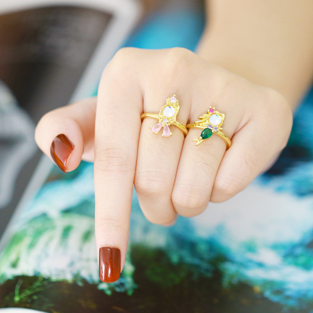 Clearance European and American fairy tale princess ring fashion simple inlaid colored zircon mermaid ring rim21