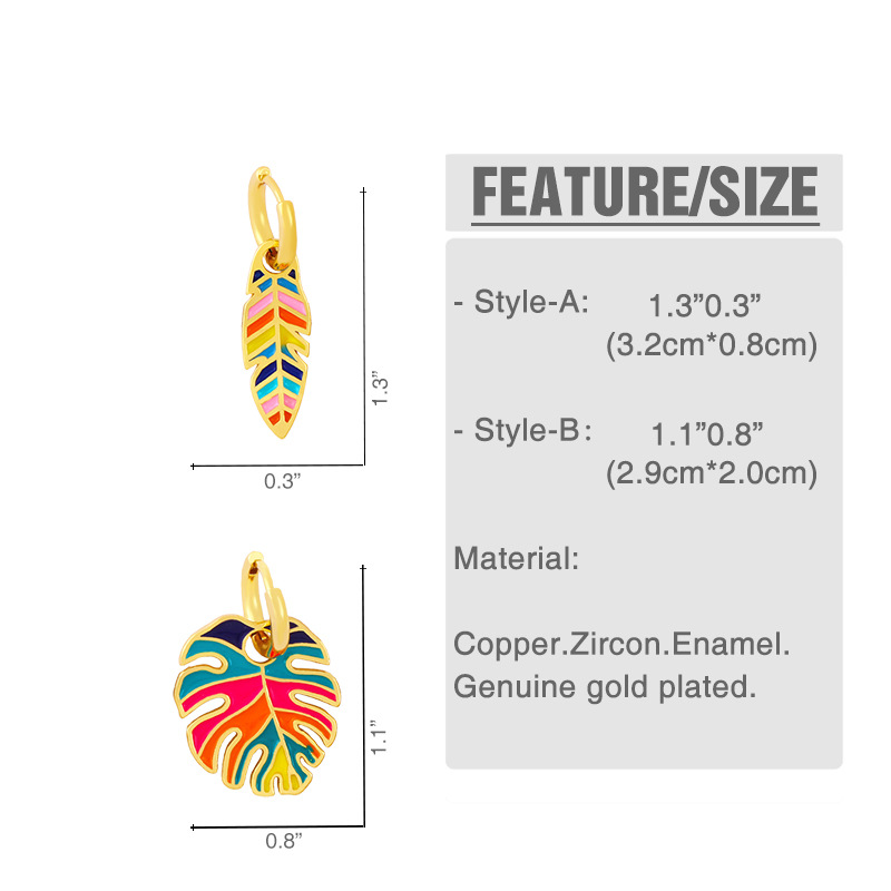 Clearance European and American fashion color oil drop leaf earrings Bohemian style all-match net red forest earrings erx63
