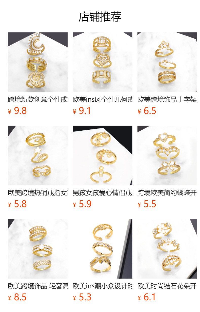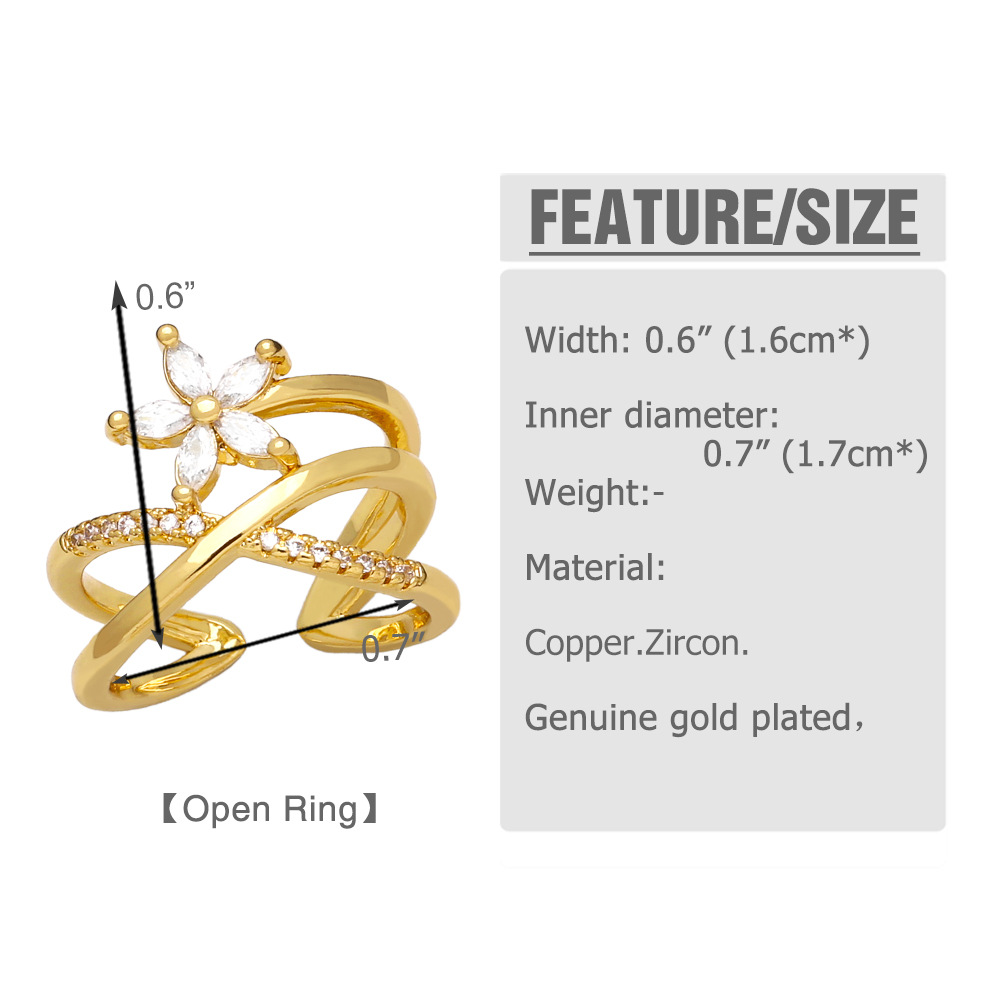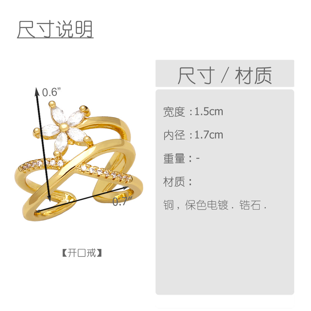 Clearance European and American fashion flower ring female temperament retro light luxury diamond heart open ring rik43