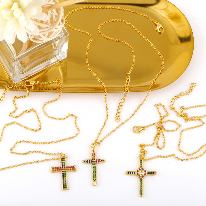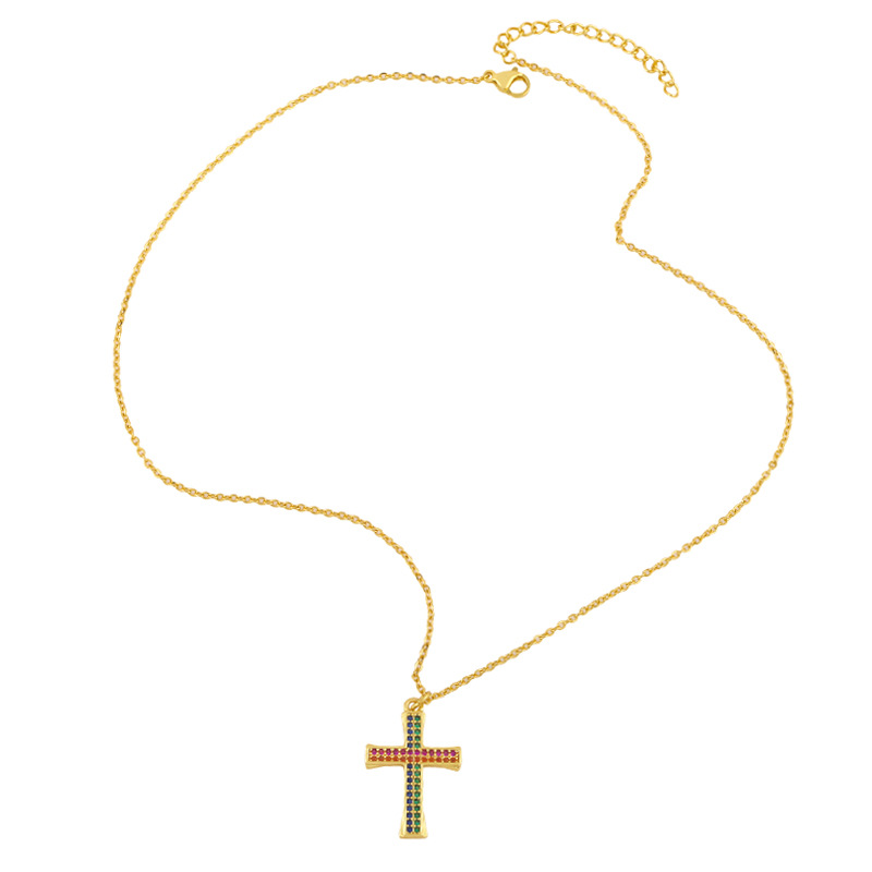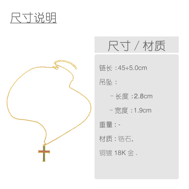Clearance European and American fashion inlaid colored zircon cross pearl necklace net celebrity personality trend pendant pendant nku40