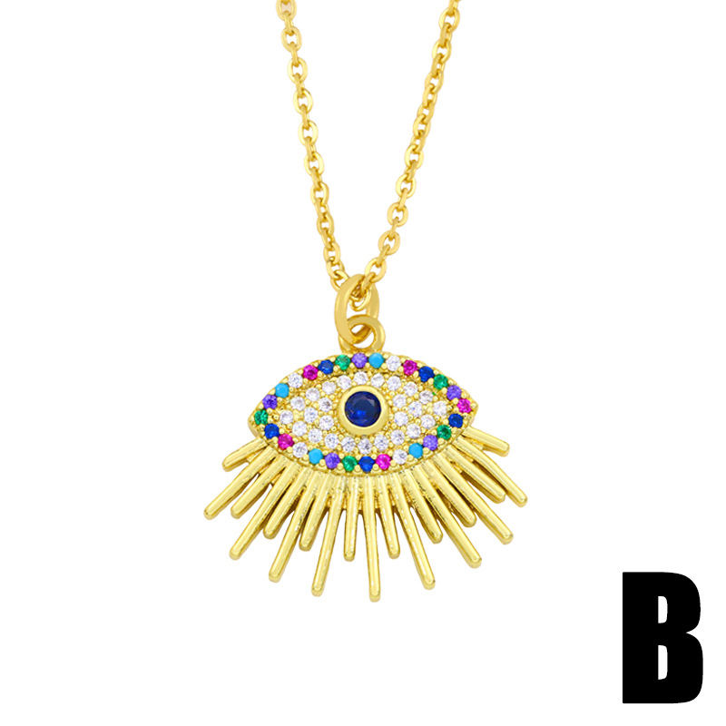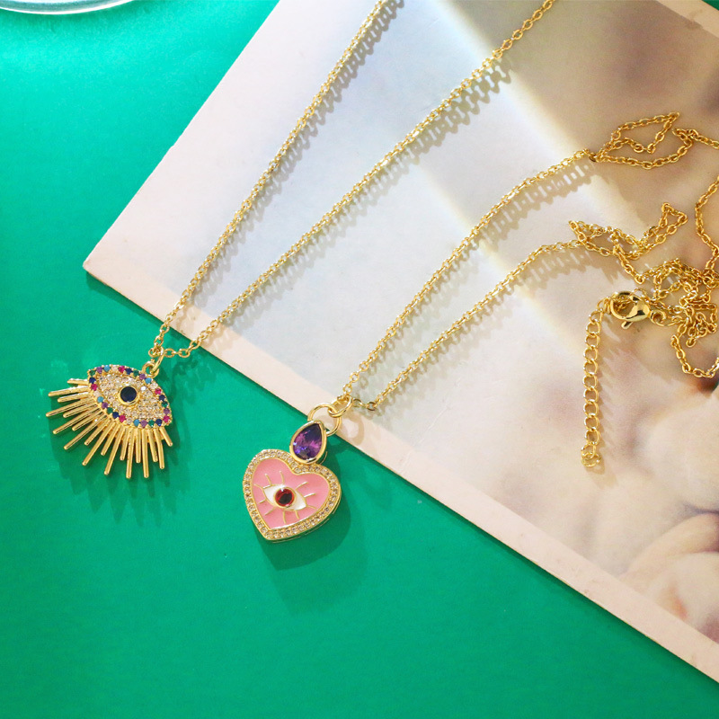 Clearance European and American fashion love necklace accessories eye shape inlaid with colored zircon clavicle chain sweater chain nky15