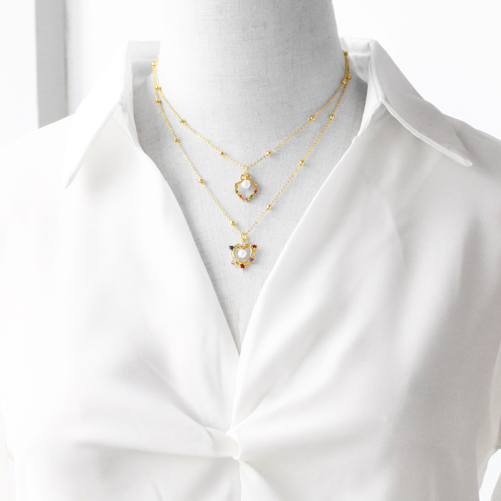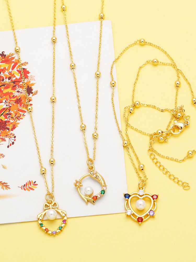 Clearance European and American fashion pearl heart necklace female niche design flower inlaid zircon clavicle chain nkb815