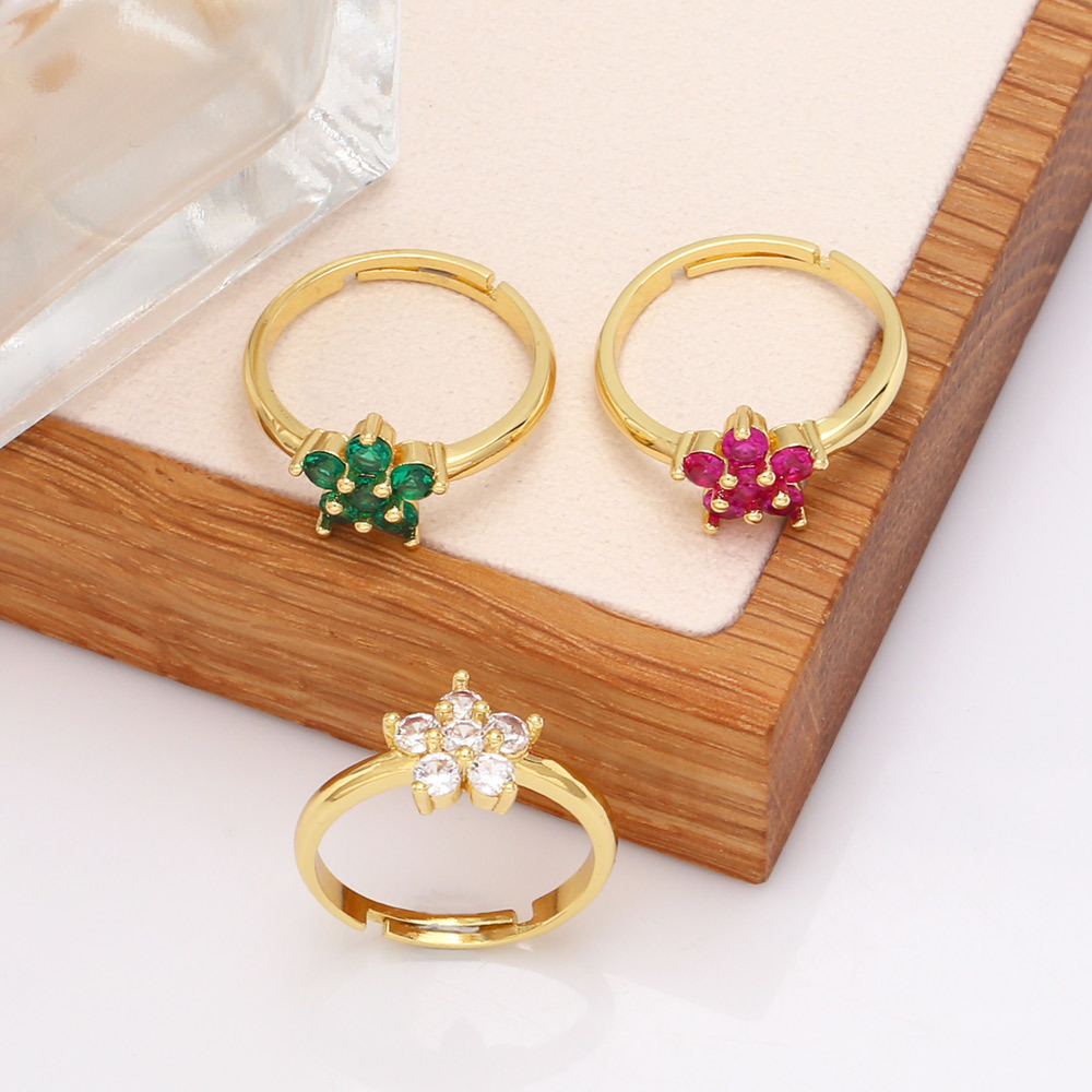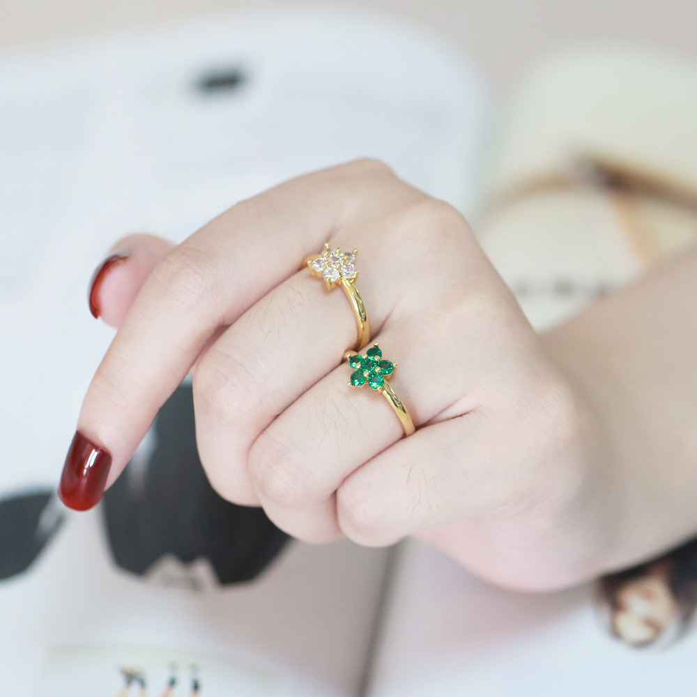 Clearance European and American fashion simple flower opening ring female sweet niche high-end index finger ring riq86