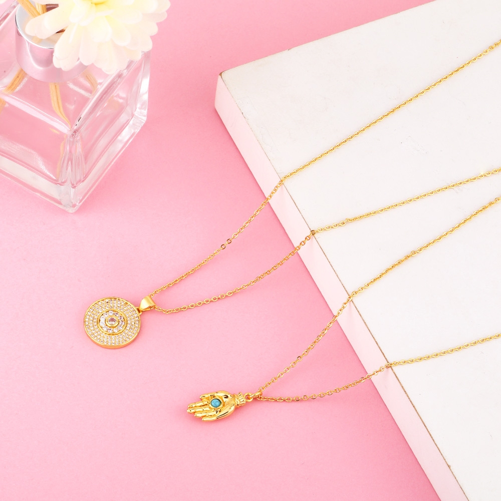 Clearance European and American fashion temperament retro zircon geometric round pendant clavicle chain female trendy sweater chain nkz57