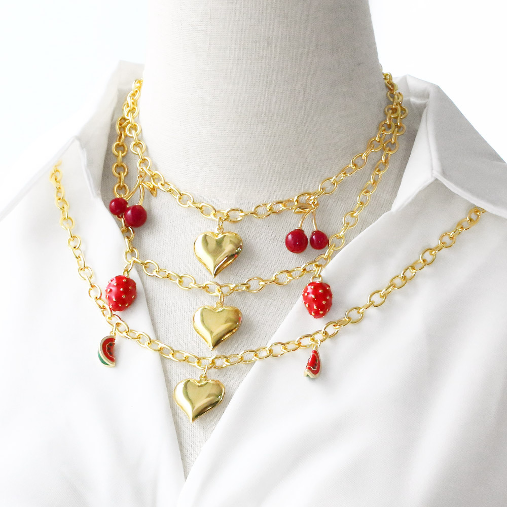 Clearance European and American fruit cherry love pendant necklace women's gold-plated clavicle chain nkb265