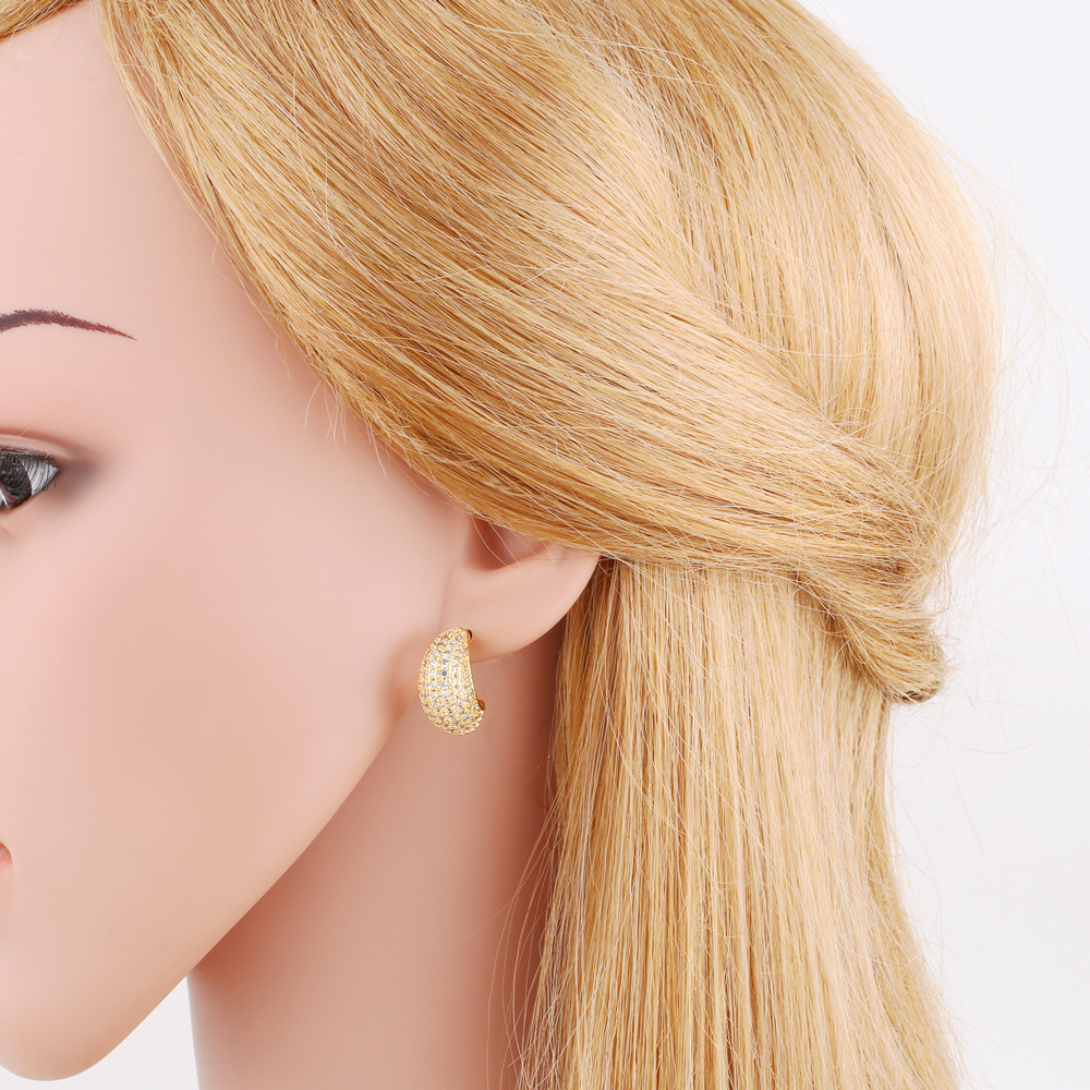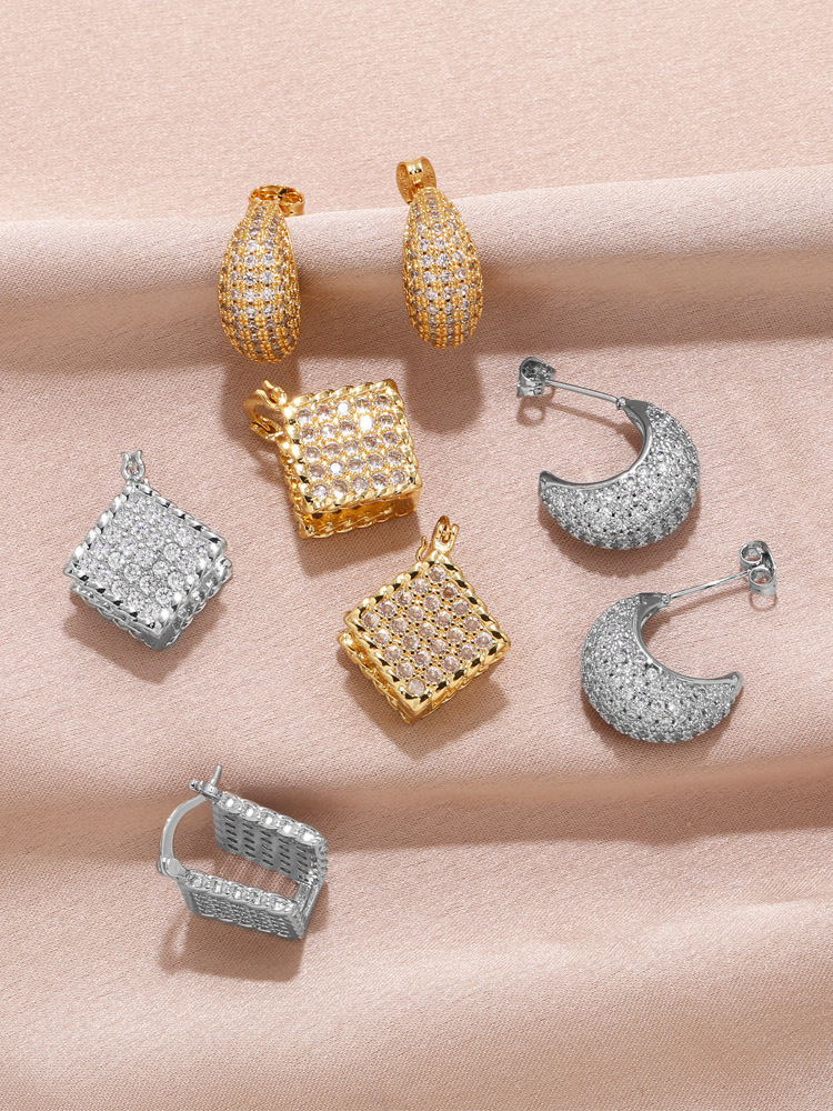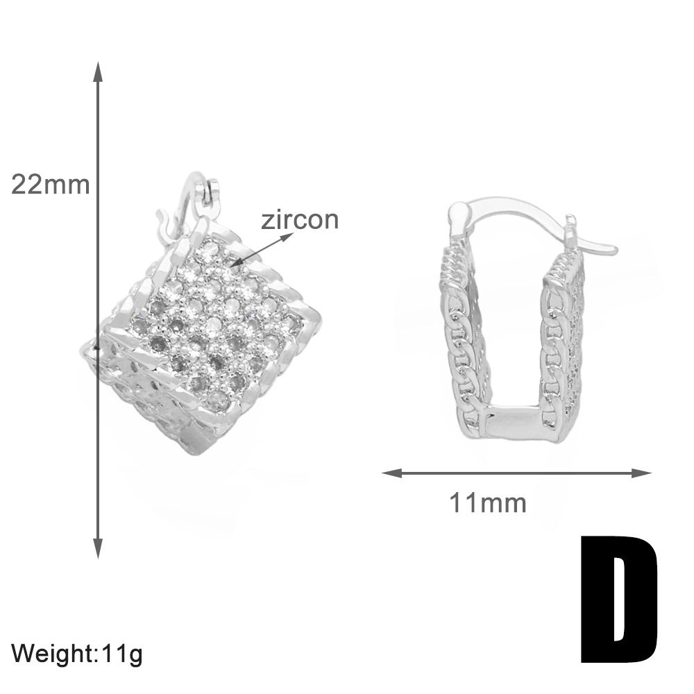 Clearance European and American full brick C-shaped earrings female niche design gold-plated high-end quadrilateral earrings erw35