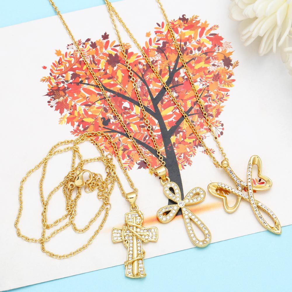 Clearance European and American full diamond cross necklace female temperament fashion cross pendant clavicle chain nkr14