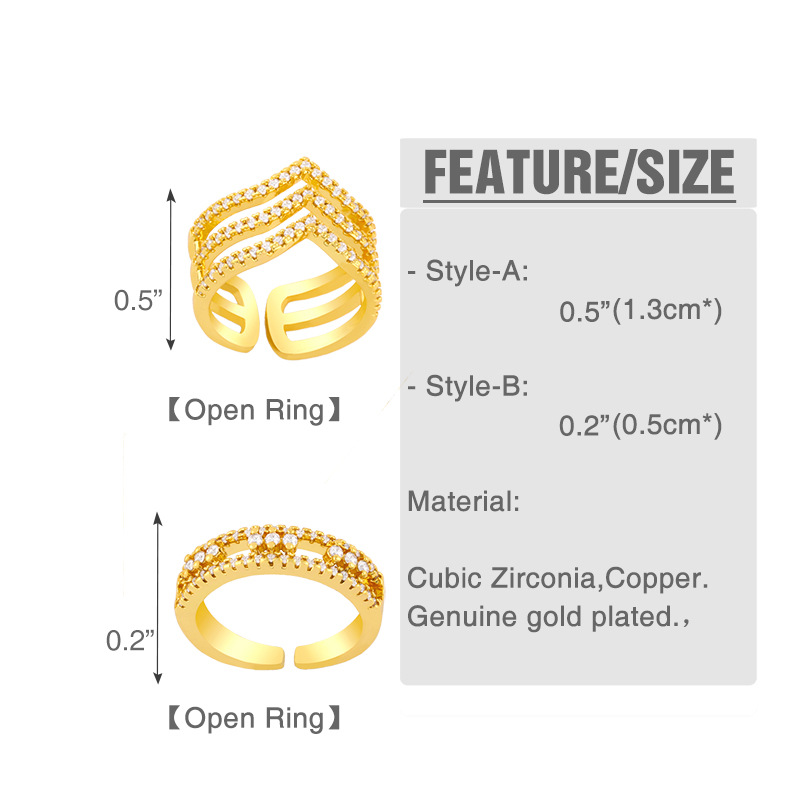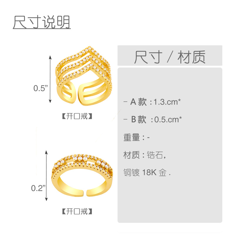 Clearance European and American geometric open ring female simple personality diamond ring rik03