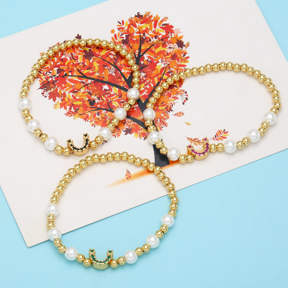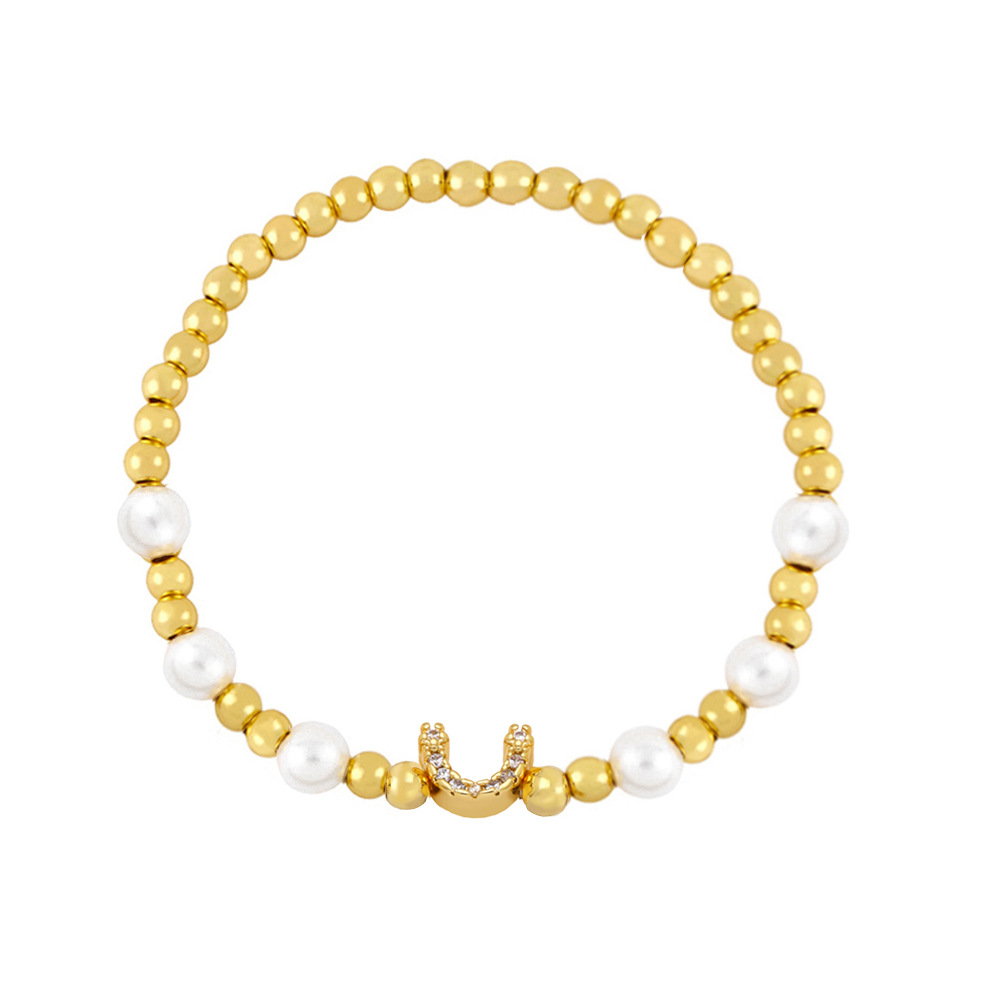 Clearance European and American geometric U-shaped bracelet women's simple beaded gold round pearl elastic bracelet brh52