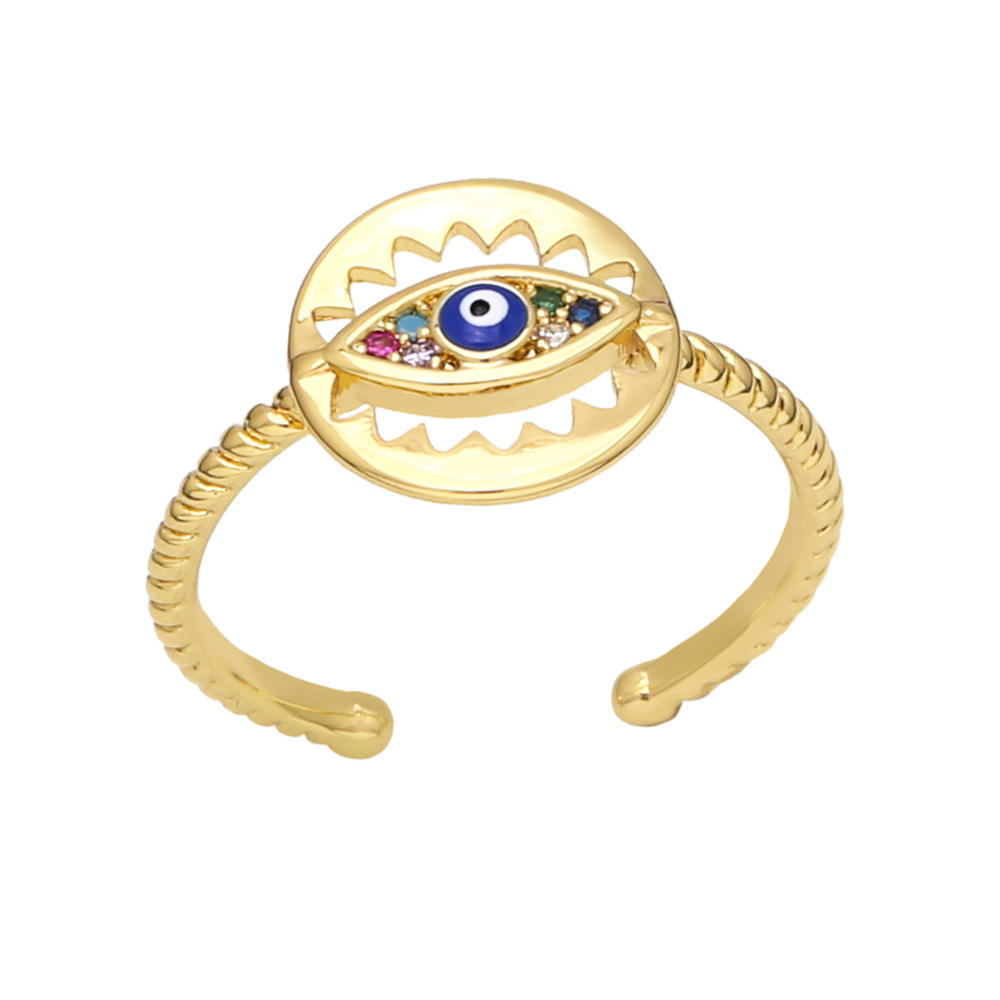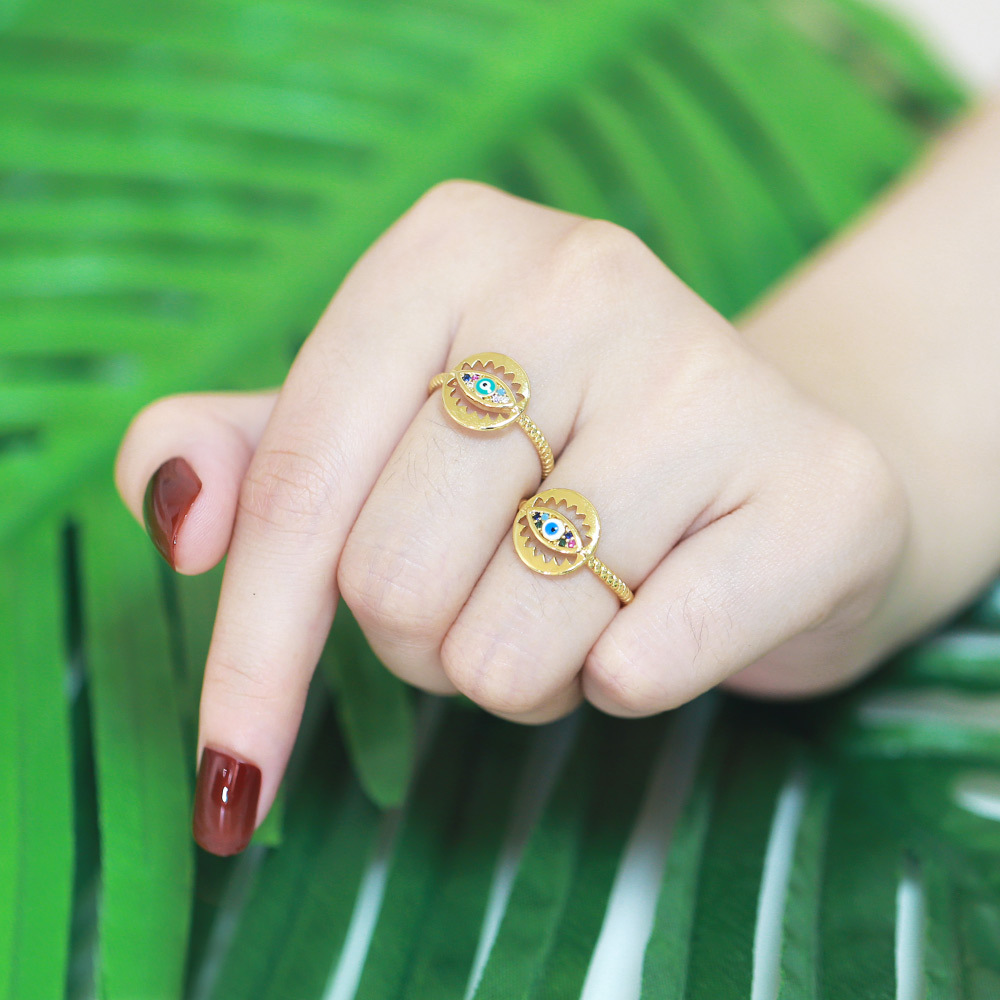 Clearance European and American hand jewelry colored gemstone zircon eye ring devil eye ring riq04