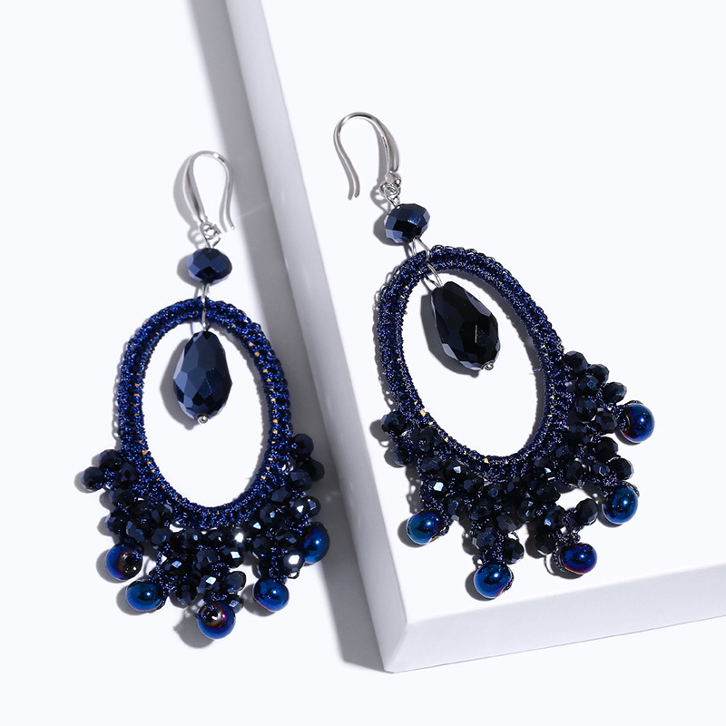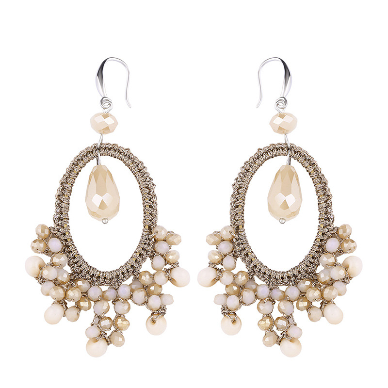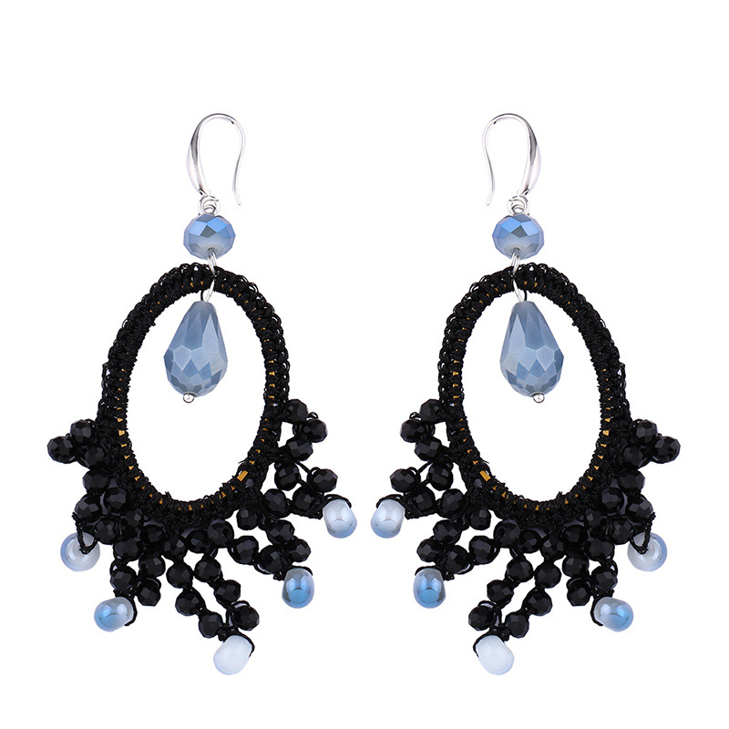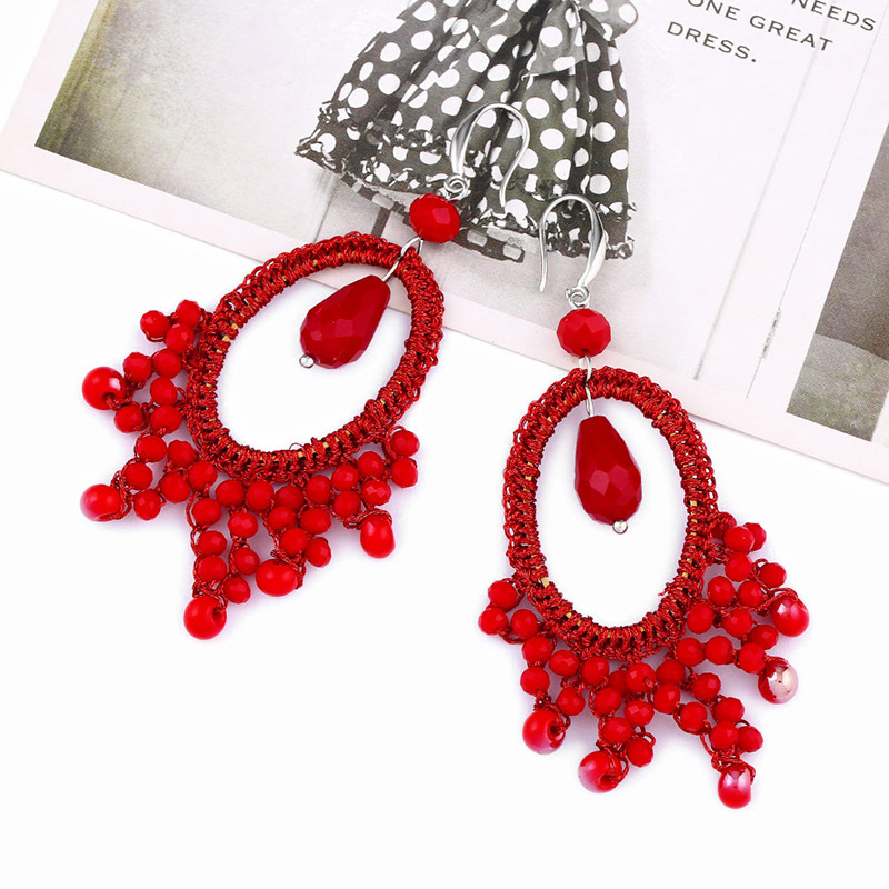 Clearance European and American hand-woven geometric fan-shaped earrings female Bohemian personality rice bead earrings erp63