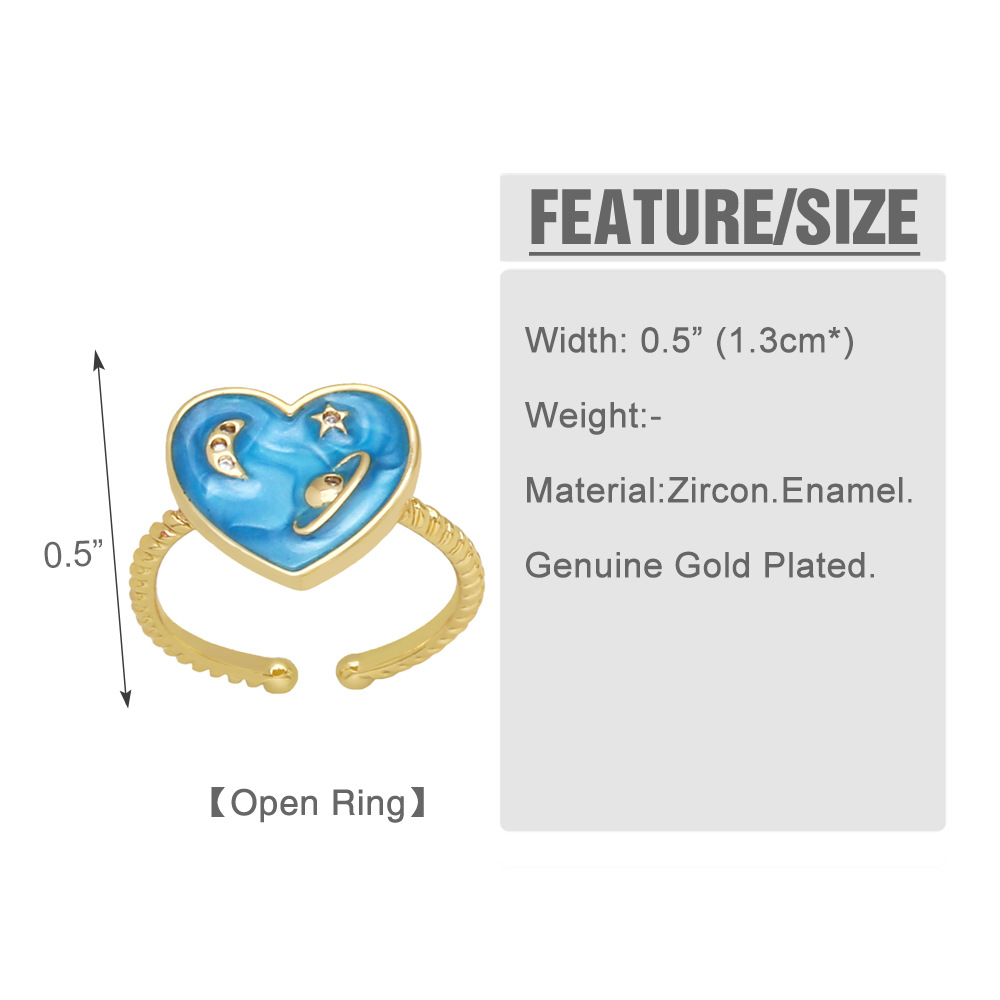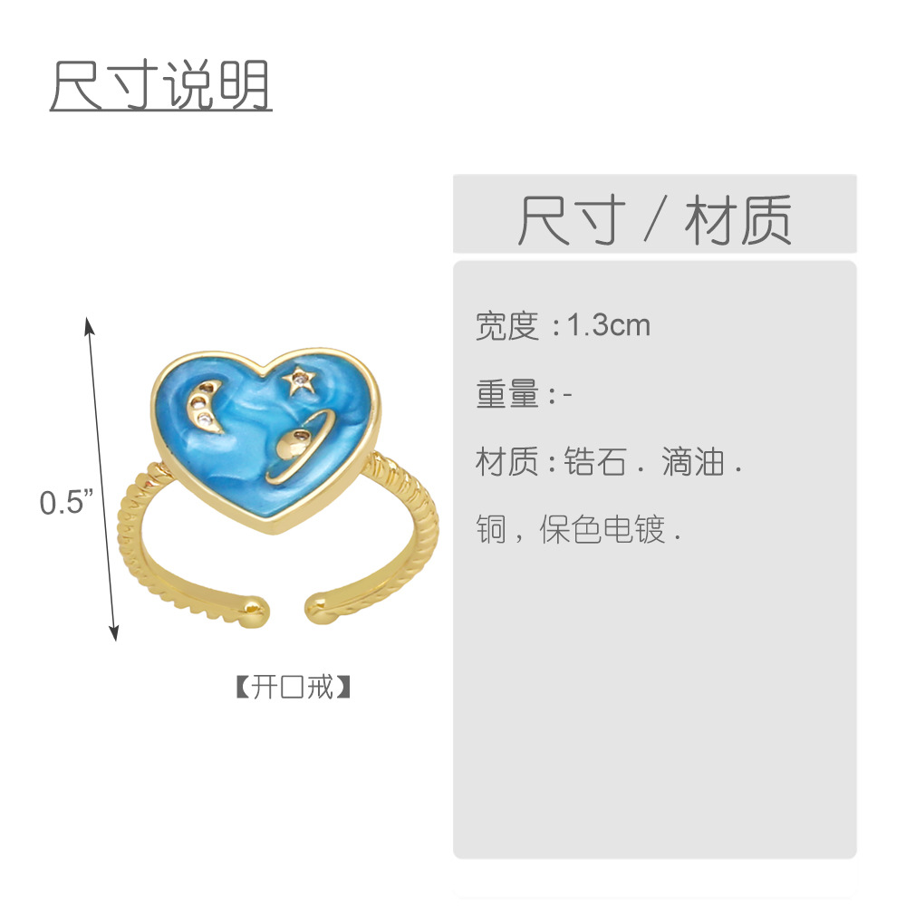 Clearance European and American heart-shaped star moon planet ring female micro-inlaid zircon simple fashion ring riq32