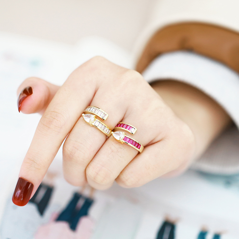 Clearance European and American high-end copper ring personality zircon ring female cold style open index finger ring rij02