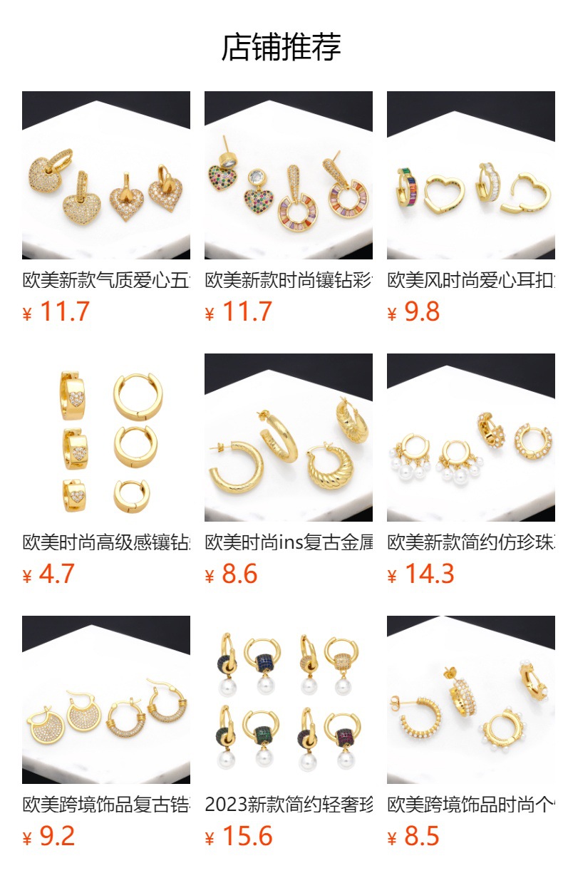 European and American style fashion heart earrings female Internet celebrity trend personality color diamond heart-shaped earrings wholesale erq98