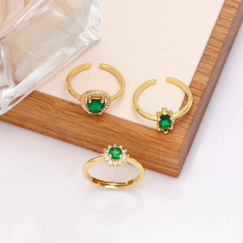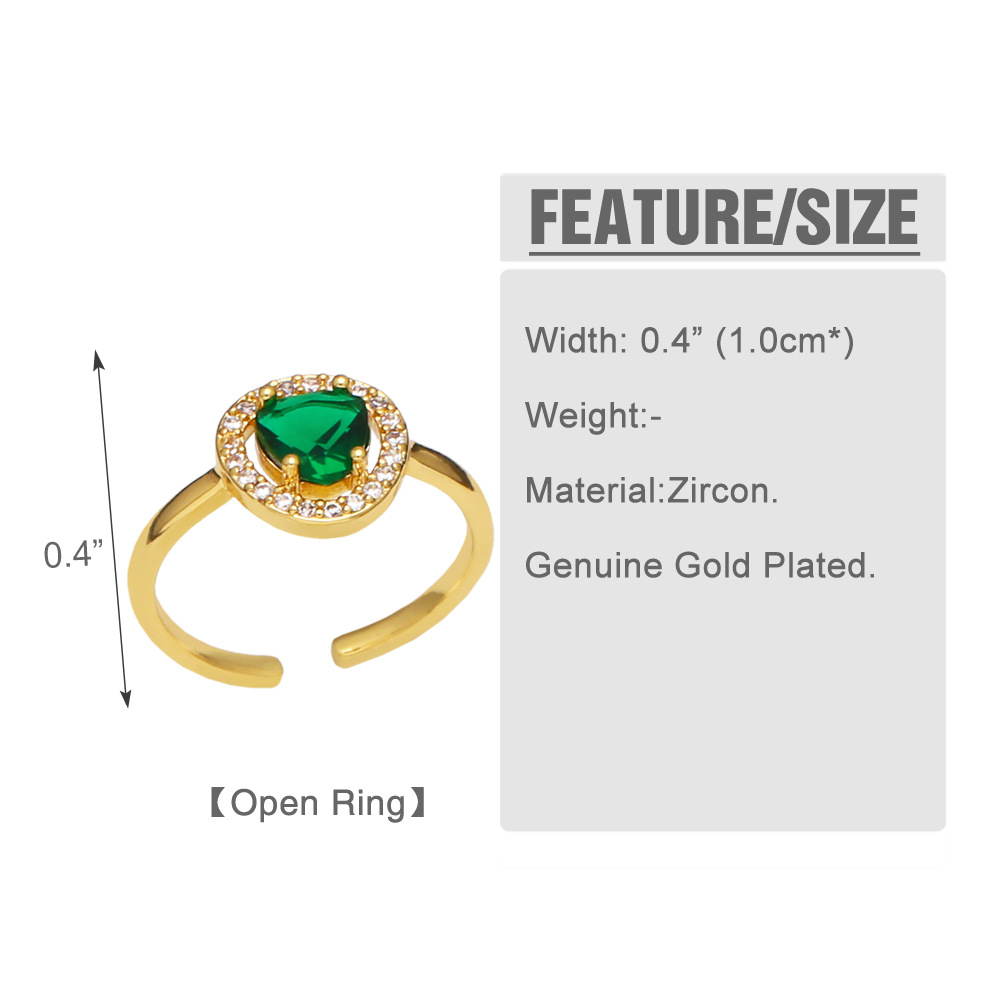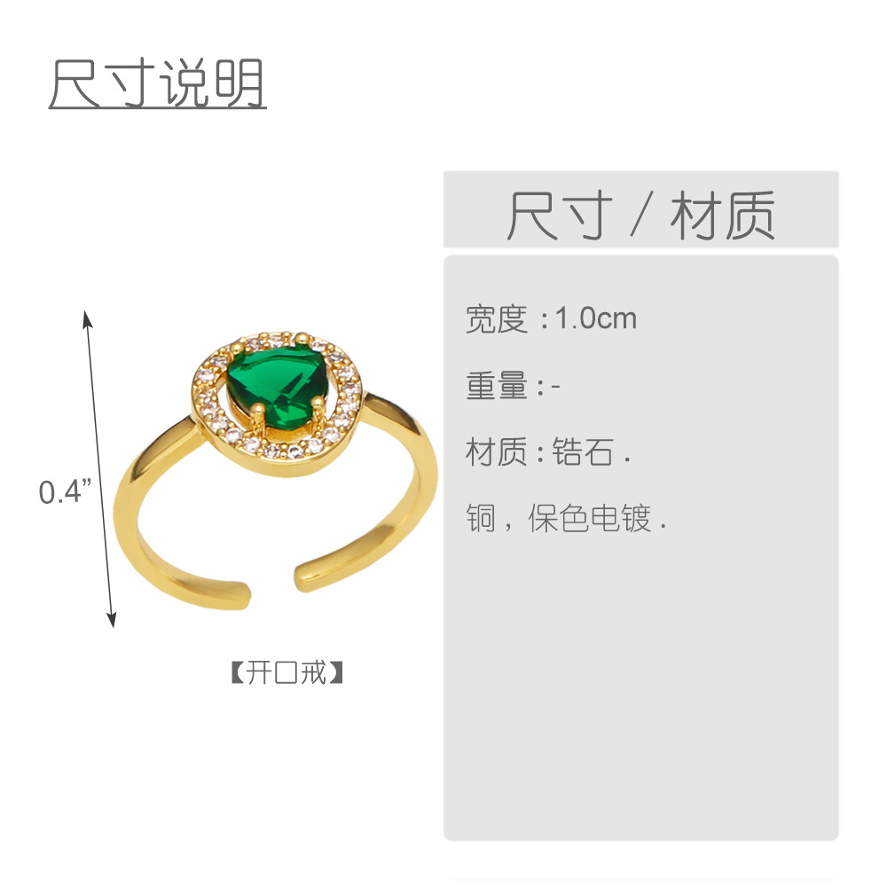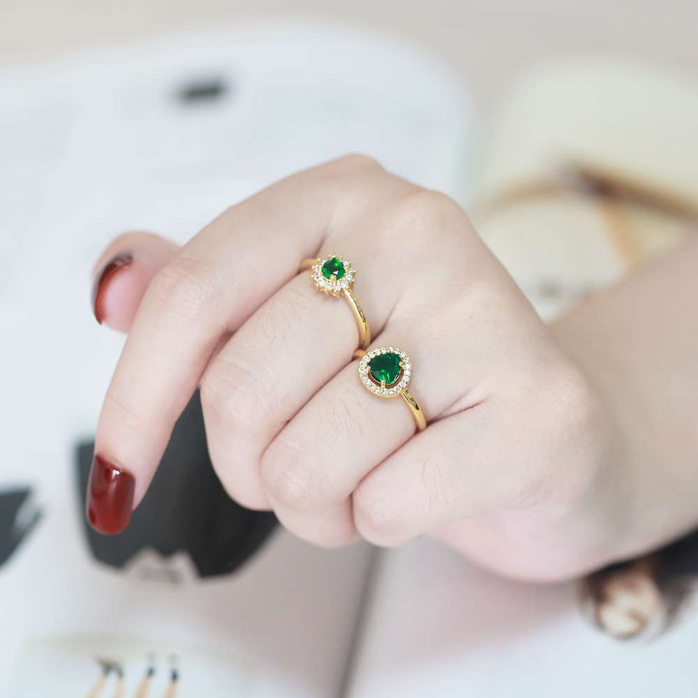Clearance European and American high-end fashion light luxury heart-shaped emerald zircon index finger ring wind ring female riq83