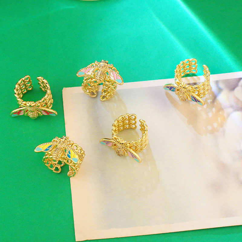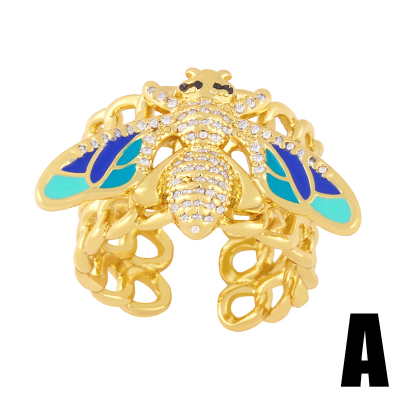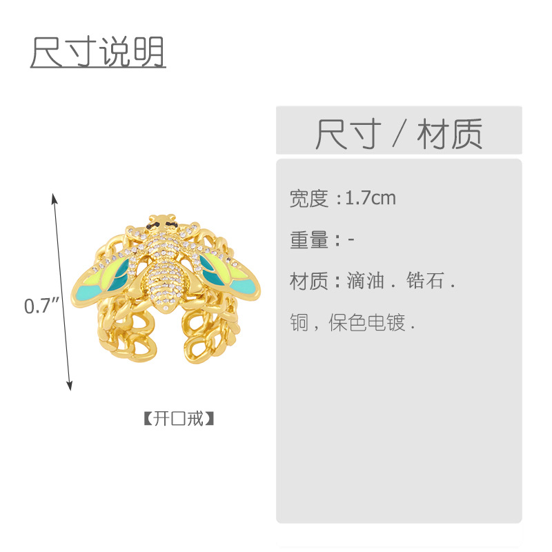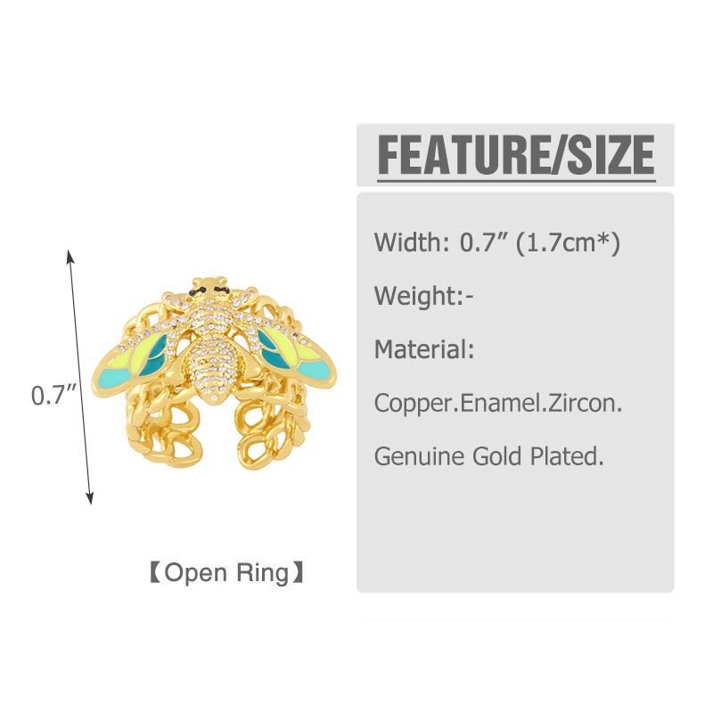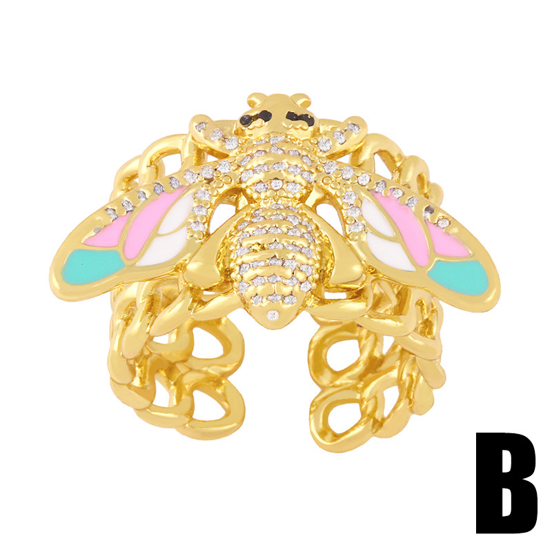 Clearance European and American hip-hop Cuban chain ring female personality metal cold style large color bee ring rin09