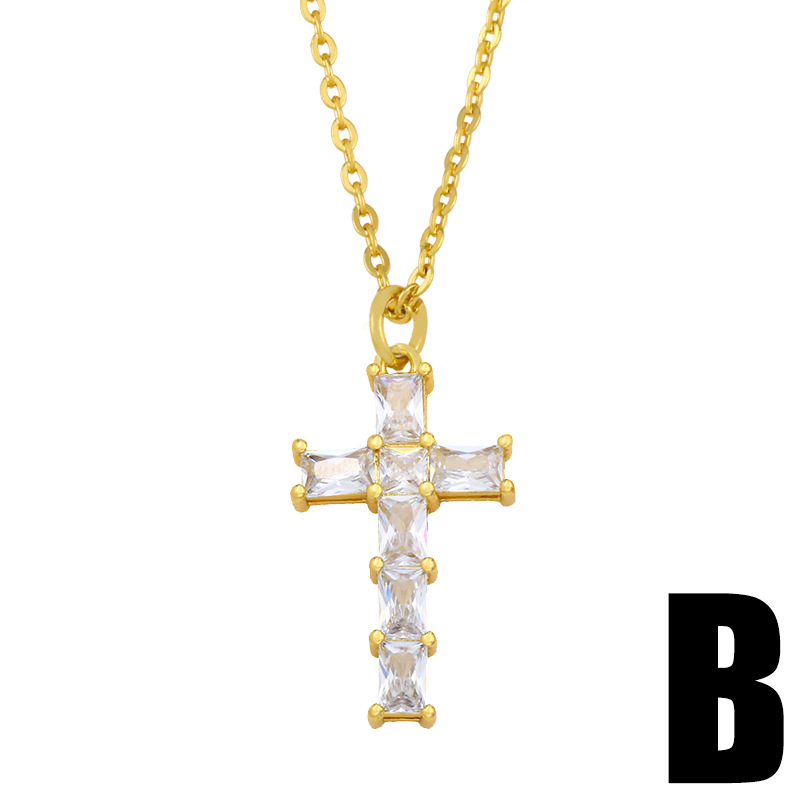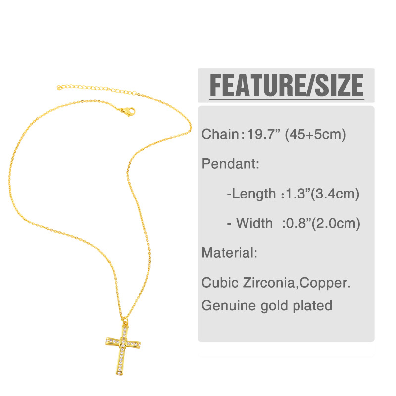 Clearance European and American hip-hop jewelry cross pendant 18K gold plated zircon cross necklace clavicle chain nkw37