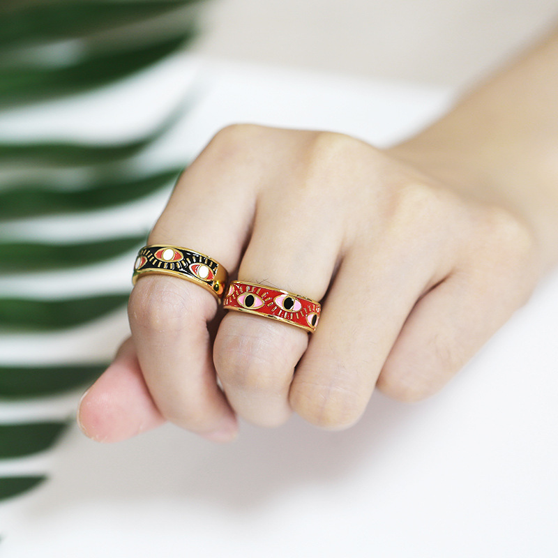 Clearance European and American hip-hop ring female devil's eye gold-plated oil drop eye ring rim01 personality