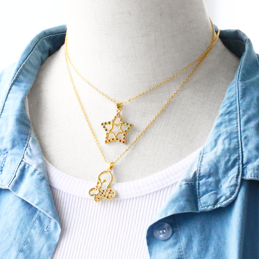 Jewelry new hot selling colored zircon 26 English letters pendant necklace gold-plated clavicle chain nku83