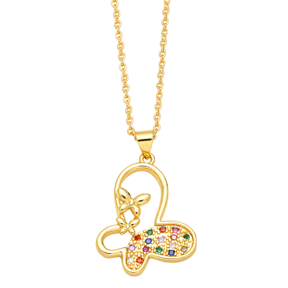 Clearance European and American inlaid colored zircon butterfly necklace creative personality hot air balloon pendant clavicle chain necklace nkp92