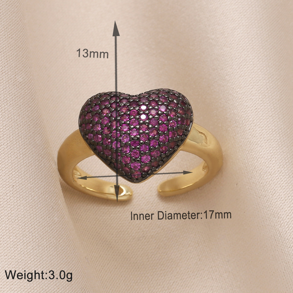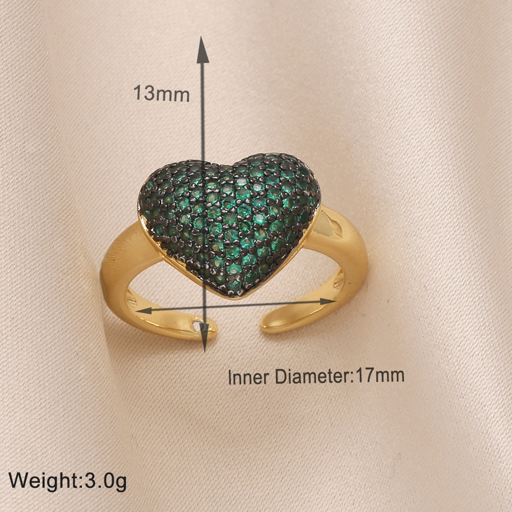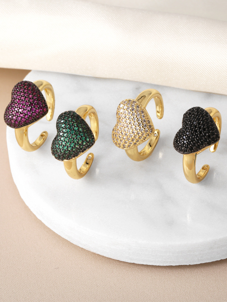 Clearance European and American inlaid colored zircon love ring female personality all-match gold-plated open ring rin14