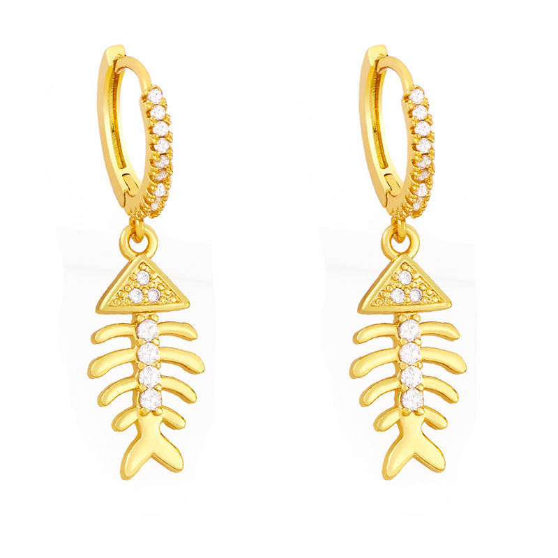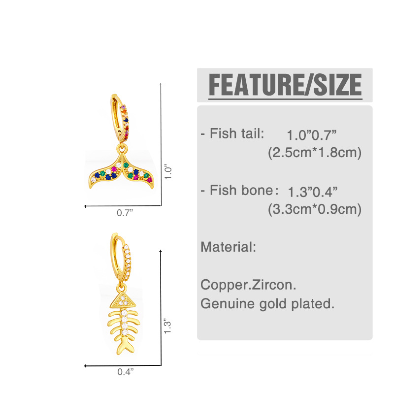 Clearance European and American INS Internet celebrity mermaid tail earrings inlaid with colored diamonds temperament fish bone earrings ear buckles female erx46