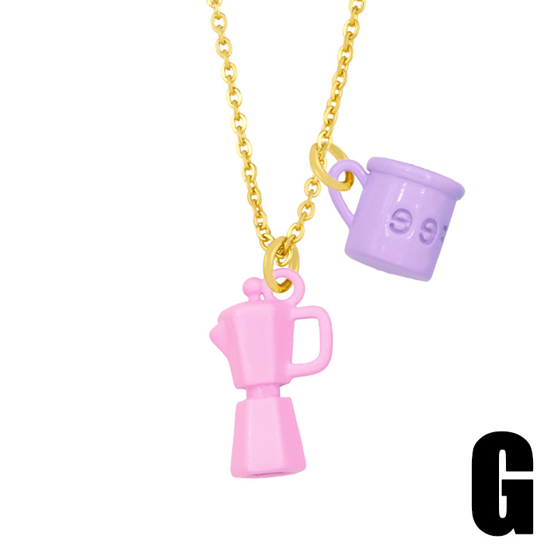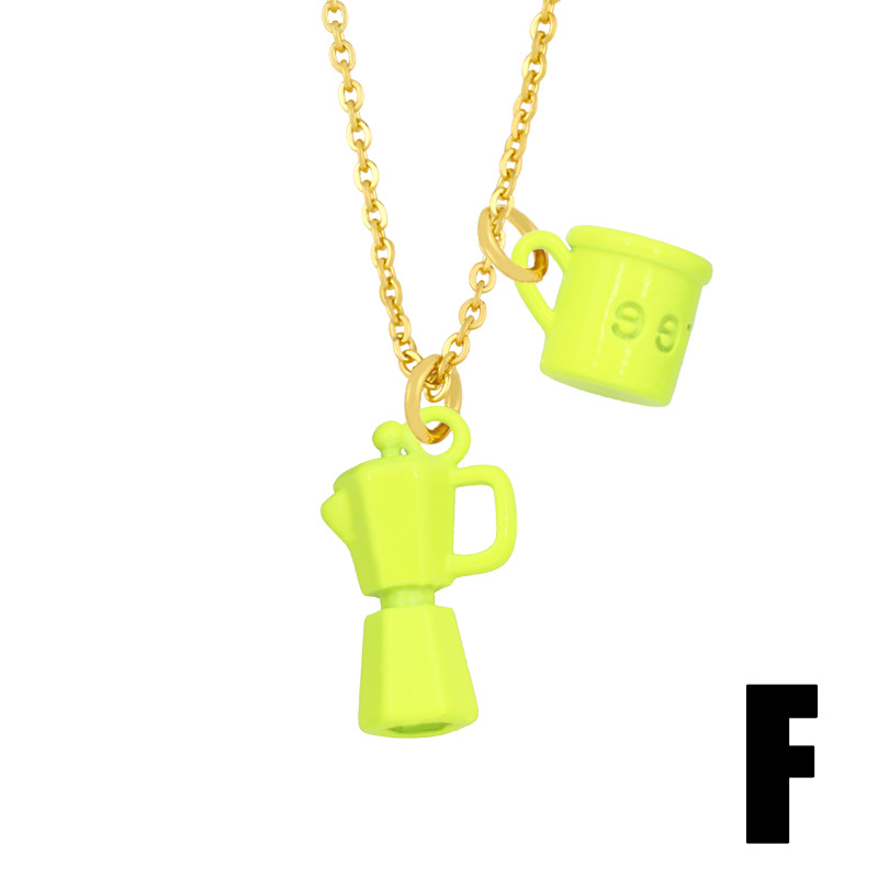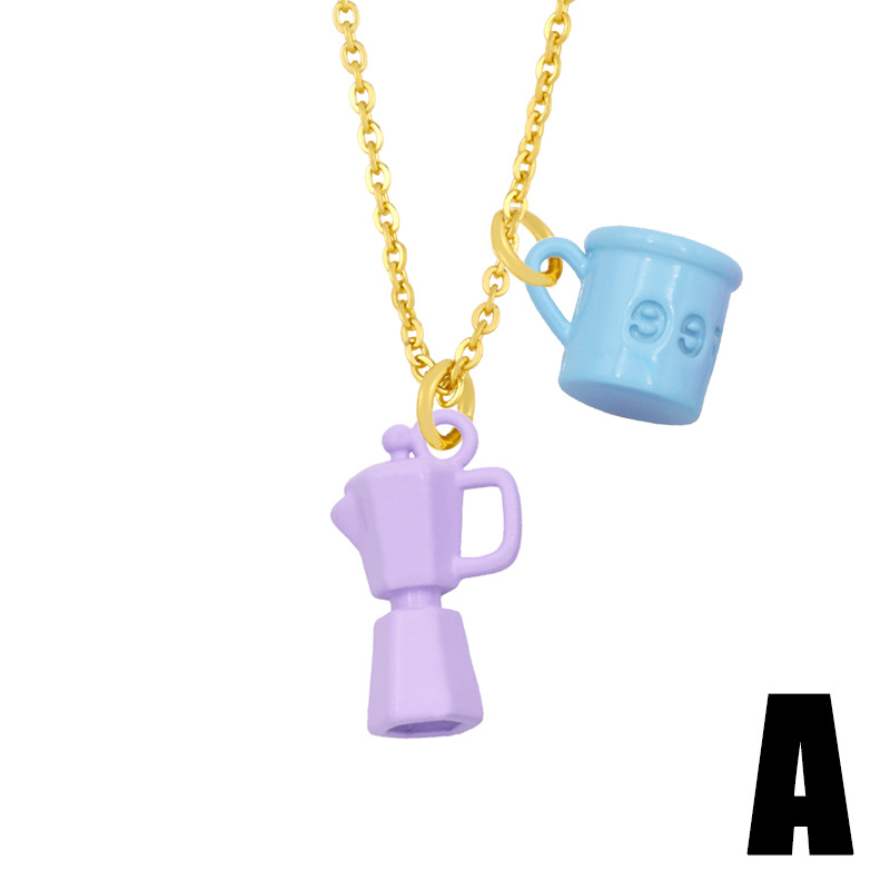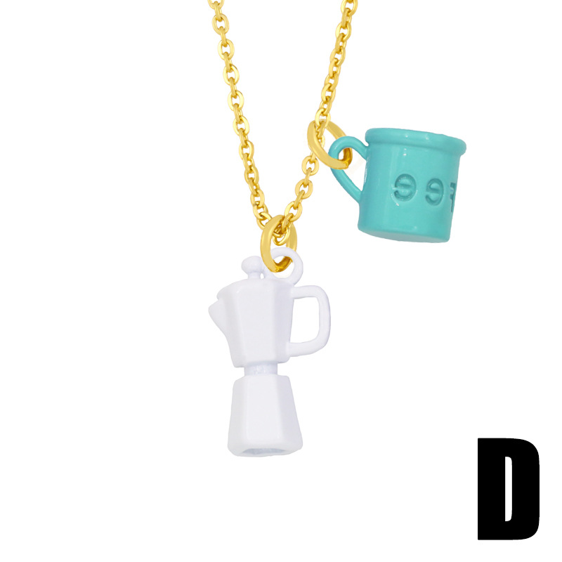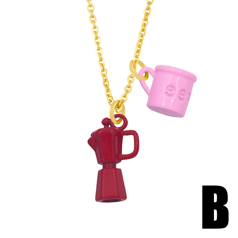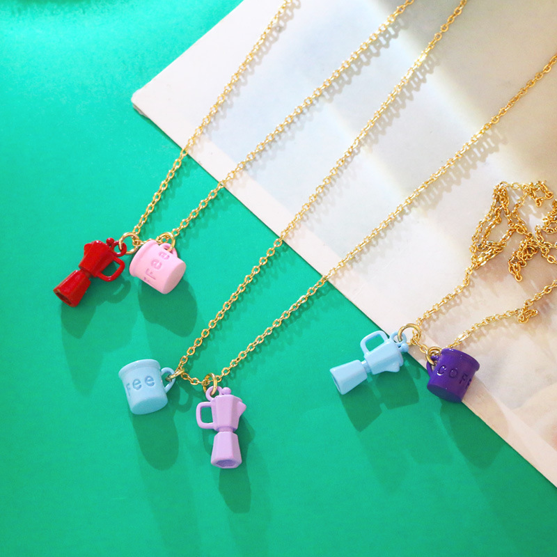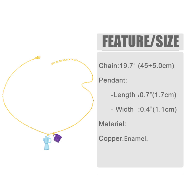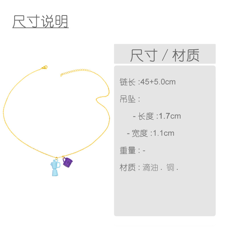 Clearance European and American jewelry creative oil dripping lettering coffee cup kettle double pendant necklace female nky33