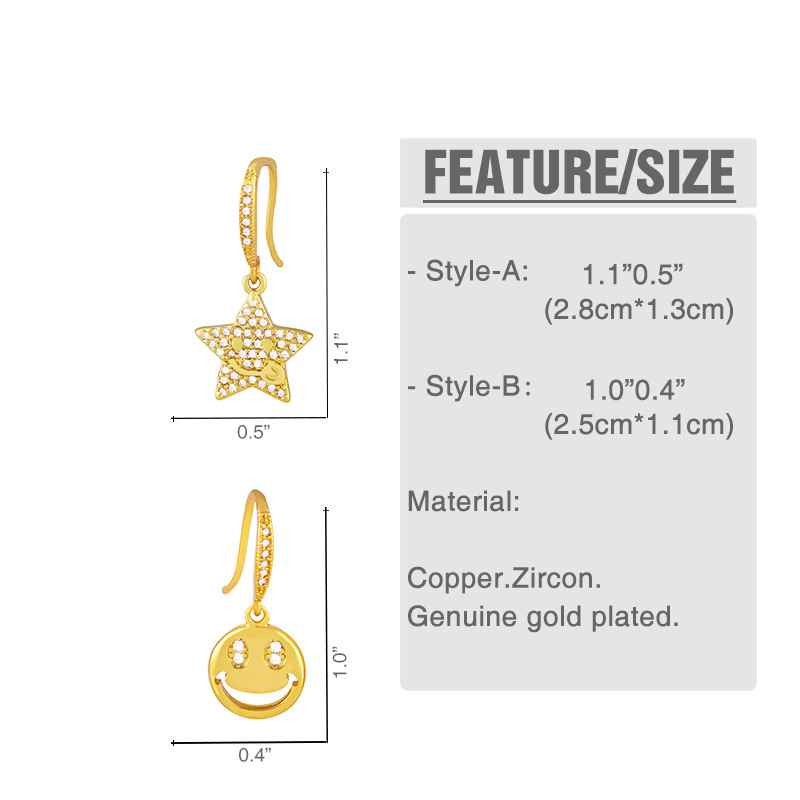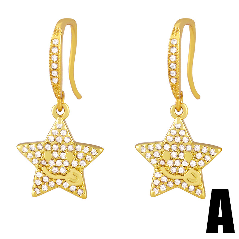 Clearance European and American jewelry creative smiley round earrings Internet celebrity cute inlaid zircon five-pointed star ear hook female erx38