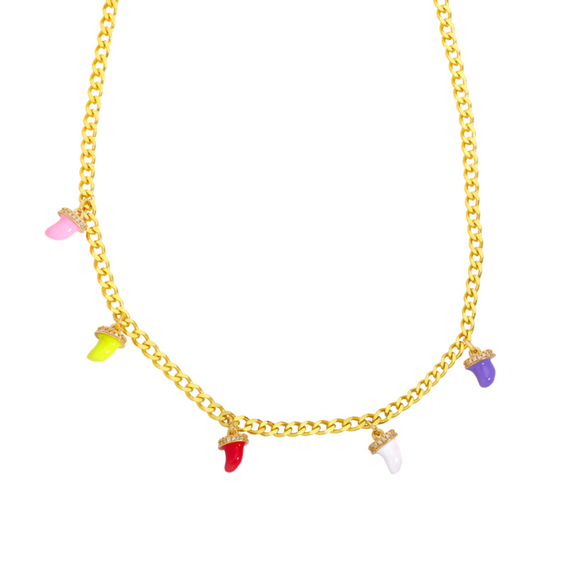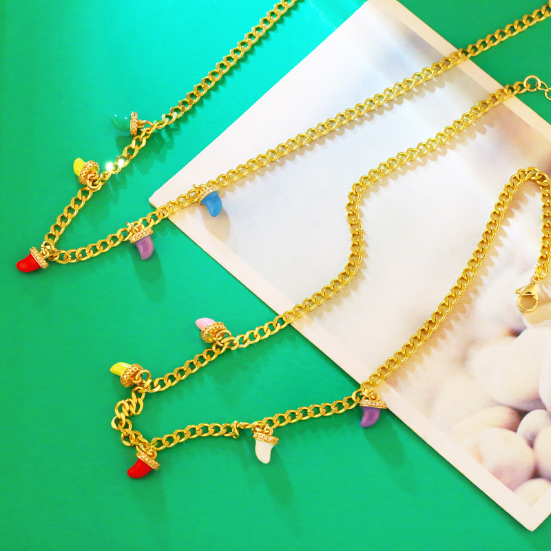 Clearance European and American jewelry creative sweet cool Cuban chain necklace color drop oil hip hop clavicle chain nkw93